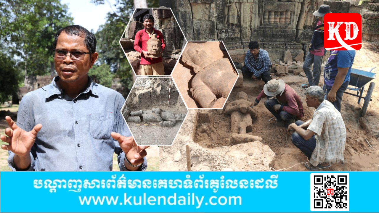 ខេត្តសៀមរាប៖ ចម្លាក់បដិមាទ្វារបាល(យក្ស)ចំនួន១ ធ្វើពីថ្មភក់ ត្រូវបានប្រទះឃើញនៅទិសខាងកើតរបស់ខ្លោងទ្វារទី២ នៃប្រាសាទបន្ទាយប្រី ខណៈពេលដែលក្រុមការងារនាយកដ្ឋានអភិរក្សប្រាសាទ និងបុរាណវិទ្យា នៃអាជ្ញាធរជាតិអប្សរា រៀបចំគំនរថ្មរាយប៉ាយ និងសម្អាតកំណកដី។