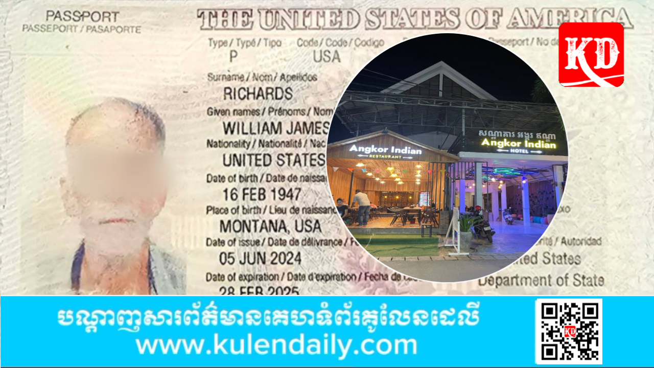 ប្រភពពីសមត្ថកិច្ចបានឱ្យដឹងថា ជនជាតិ អាមេរិកកាំង ដែលបានស្លាប់នេះមានឈ្មោះ RICHARDS WILLIAM JAMES ភេទប្រុស អាយុ ៧៧ឆ្នាំ ជនជាតិ កាន់លិខិតឆ្លងដែនលេខ ៧២១០១០៩២៧ ស្នាក់នៅបណ្ដោះអាសន្នទីតាំងកើតហេតុខាងលើ។
