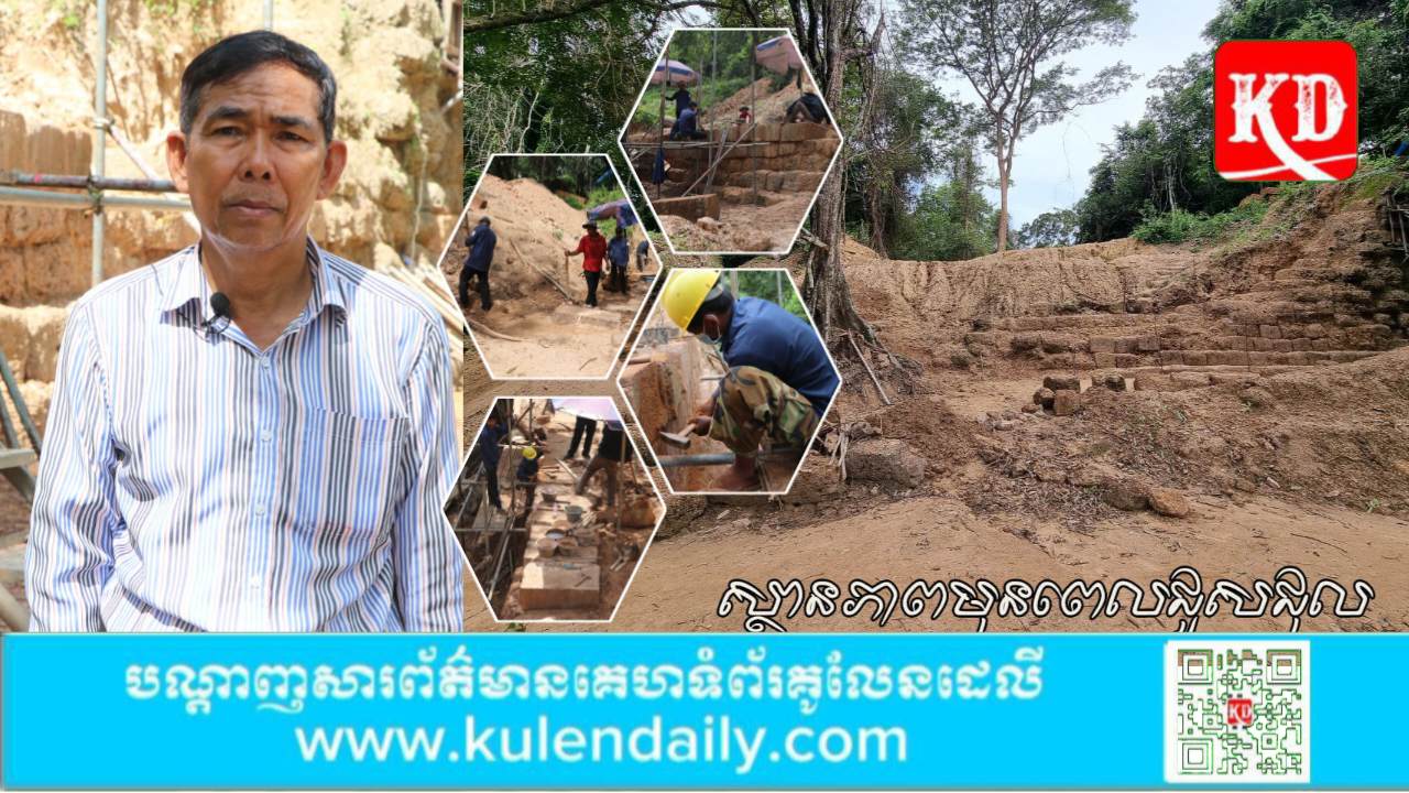ខេត្តសៀមរាប ៖ ក្រុមអ្នកជំនាញនៃអាជ្ញាធរជាតិអប្សរា ចំណាយពេល៨ខែ ដើម្បីជួសជុលកំពែងធ្វើពីថ្មបាយក្រៀមរបស់ក្រុងអង្គរធំ ដែលស្ថិតនៅប៉ែកខាងជើង ខ្លោងទ្វារដីឆ្នាំង ប្រវែង២៥ម៉ែត្រ ធ្វើឱ្យរឹងមាំឡើងវិញ។