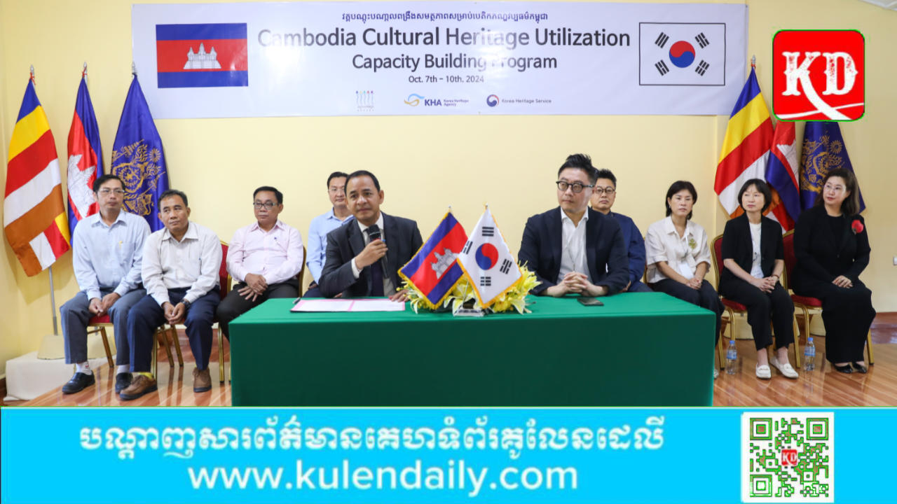 ខេត្តសៀមរាប ៖ នៅព្រឹកថ្ងៃទី៧ ខែតុលា ឆ្នាំ២០២៤ អាជ្ញាធរជាតិអប្សរា សហការជាមួយទីភ្នាក់ងារបេតិកភណ្ឌកូរ៉េ បានរៀបចំវគ្គបណ្ដុះបណ្ដាលពង្រឹងសមត្ថភាពប្រើប្រាស់បេតិកភណ្ឌវប្បធម៌ ដោយផ្តោតលើការងារអភិរក្ស ការអភិវឌ្ឍន៍ផលិតផលទេសចរណ៍ និងការប្រើប្រាស់នូវបេតិកភណ្ឌវប្បធម៌។