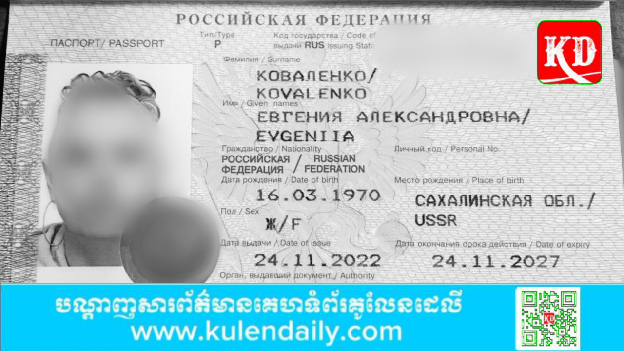 ប្រភពពីសមត្ថកិច្ចបានឱ្យដឹងថា សាកសពស្ត្រីខាងលើមានឈ្មោះ KOVAL ENKO EVGENI IA អាយុ ៥៤ឆ្នាំ មុខរបរ គ្មាន កាន់លិខិតឆ្លងដែនលេខ 66N2134107 ស្នាក់នៅបណ្ដោះអាសន្ន ទីតាំងកើតហេតុខាងលើ។