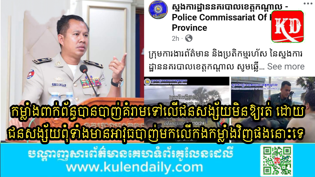 ខេត្តកណ្តាល ៖ ផ្អើលប្រជាពលរដ្ឋថាមានករណីបាញ់ប្រហារគ្នាទ្រង់ទ្រាយធំ តែស្នងការដ្ឋាន នគរបាលខេត្តកណ្តាលបានបញ្ជាក់ថា ចំពោះប្រតិបត្តិការនេះកម្លាំងពាក់ព័ន្ធបានបាញ់គំរាមទៅលើជនសង្ស័យមិនឱ្យរត់ ចំណែកជនសង្ស័យពុំមានអាវុធបាញ់មកលើកងកម្លាំងវិញនោះទេ។ ការបញ្ជាក់នេះ ក្រុមការងារព័ត៌មាន និងប្រតិកម្មរហ័ស នៃស្នងការដ្ឋាននគរបាលខេត្តកណ្តាល បានធ្វើឡើនៅលើផេកហ្វេសប៊ុកផ្លូវការ ” ស្នងការដ្ឋាននគរបាលខេត្តកណ្តាល- Police Commissariat Of Kandal Province ” នាព្រឹកថ្ងៃទី ២៣ ខែតុលា ឆ្នាំ២០២៤ នេះ ដើម្បីប្រវត្តិកម្ម ទៅនិង គណនី TikTok ឈ្មោះ SOKHUN បានបង្ហោះវីដេអូសកម្មភាពកងកម្លាំងនគរបាលស្រុកពញាឮចេញប្រតិបត្តិការបង្រ្កាបករណីចាប់ជំរិត ដោយភ្ជាប់ខ្លឹមសារថា ៖ វត្តចេតីយថ្មី ផ្លូវជាតិលេខ៥ ហៅវត្តឧដុង្គ មានករណីបាញ់ប្រហារគ្នាទ្រង់ទ្រាយធំបឋមឃាត់ខ្លួនបានចំនួន៧នាក់ ព័ត៌មានបឋម 22/10/2024។
