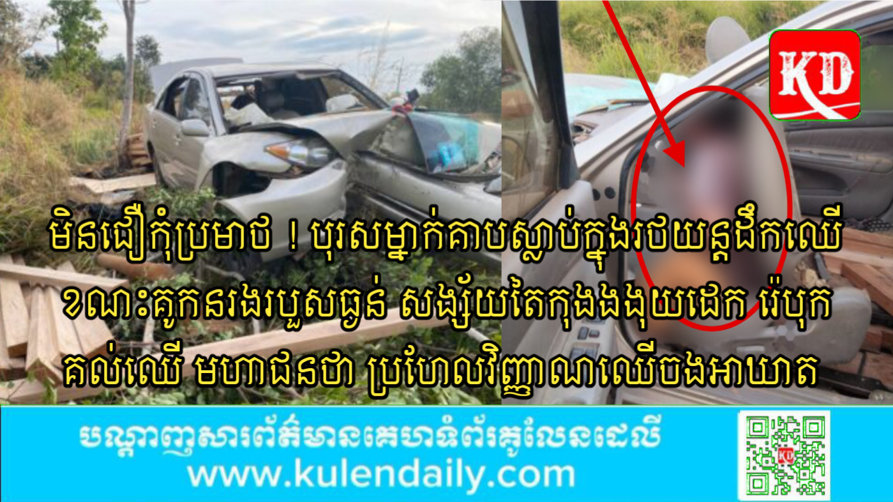 ប្រភពពីសមត្ថកិច្ចបានឲ្យដឹងថា ថាករណីគ្រោះថ្នាក់ខាងលើ បង្កឡើងដោយរថយន្ត Camry បាឡែន ពណ៌ប្រាក់ ផ្លាកលេខភ្នំពេញ 2AB-4229 ផ្ទុកឈើពេញបើកបរក្នុងទិសដៅពីទិសខាងកើតទៅលិច លុះដល់ចំណុចកើតហេតុខាងលើ បានរ៉េចង្កូតចេញពីផ្លូវ ទៅបុកគល់ឈើបណ្តាលអោយរថយន្ត រងការខូចខាត់ធ្ងន់ផ្នែកខាងមុខធ្ងន់ធ្ងរ ហើយឈើដែលផ្ទុកក្នុងរថយន្ត បុកគាបអ្នកបើកបរជាប់និងដៃចង្កូតស្លាប់និងកន្លែង ចំណែកអ្នករួមដំណើរម្នាក់ទៀត រងរបួសធ្ងន់បាក់ភ្លៅ ទាំងសងខាង ត្រូវបានជួយសង្រ្គោះនាំទៅមន្ទីរពេទ្យ។