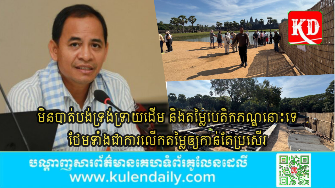 ខេត្តសៀមរាប ៖ នៅព្រឹកថ្ងៃទី ១២ ខែមករា ឆ្នាំ២០២៥ នេះ ឯកឧត្តម ឡុង កុសល អគ្គនាយករង និងជាអ្នកនាំពាក្យ អាជ្ញាធរជាតិអប្សរា បានប្រាប់ឲ្យ ទីភ្នាក់ងារ សារព័ត៌មានគូលែនដេលី ដឹងថា ការសាងសង់សំណង់ដែកលាយបេតុងវេទិការ នៅមាត់ស្រះទឹកខាងត្បូង ក្នុងប្រាសាទអង្គរវត្ត ដែលស្ថិតក្នុងភូមិក្រវ៉ាន់ សង្កាត់នគរធំ ក្រុងសៀមរាប ខេត្តសៀមរាបនោះ គឺជាកំរាលដើម្បីភ្ញៀវទេសចរថតរូបកំពូលប្រាសាទចាំងផ្លាតជាមួយទឹកស្រះ។