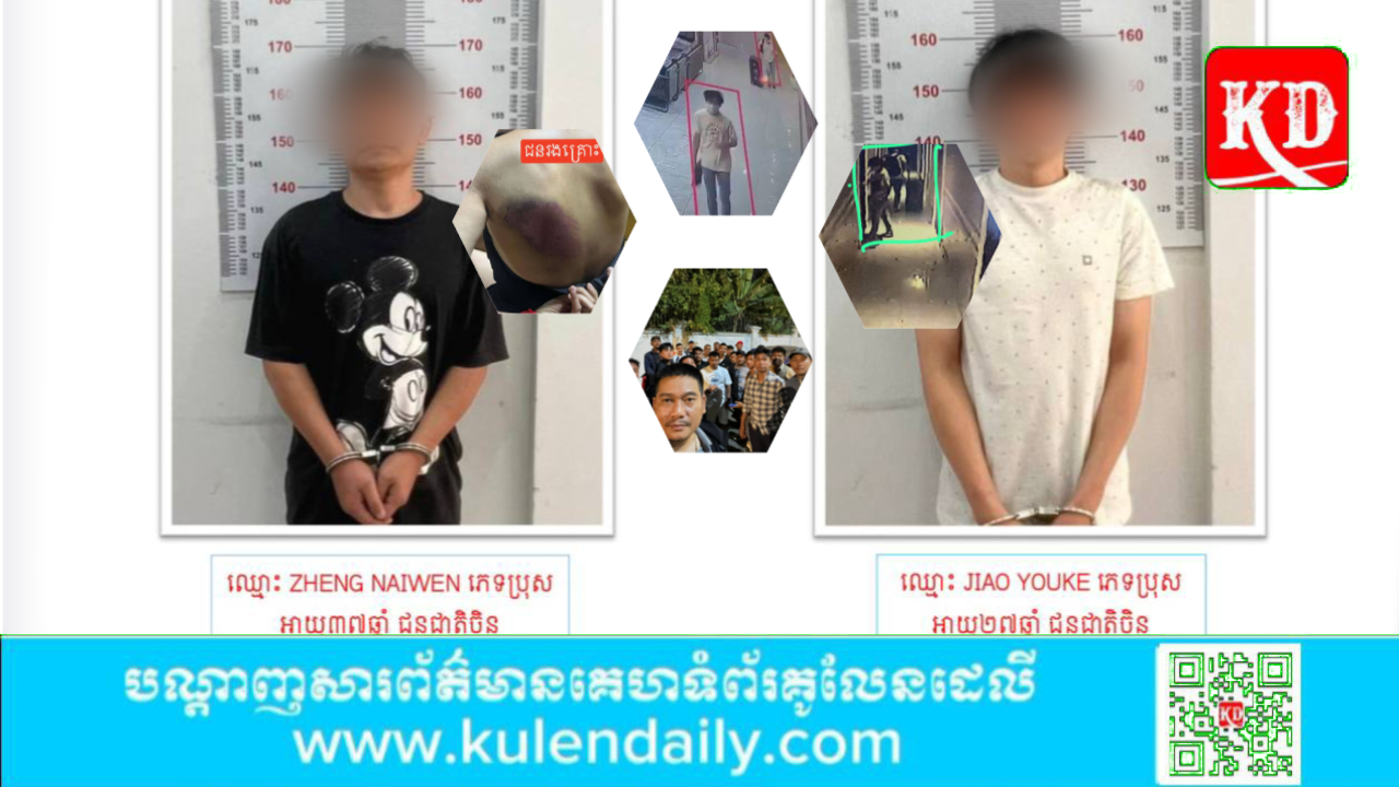 កម្លាំងជំនាញបានចាប់ខ្លួនក្រុមជនសង្ស័យចំនួន២នាក់ រួមមាន ទី១៖ឈ្មោះ JIAO YOUKE អាយុ២៧ឆ្នាំ ជនជាតិចិន និងទី២៖ឈ្មោះ ZHENG NAIWEN អាយុ៣៧ឆ្នាំ ជនជាតិចិន