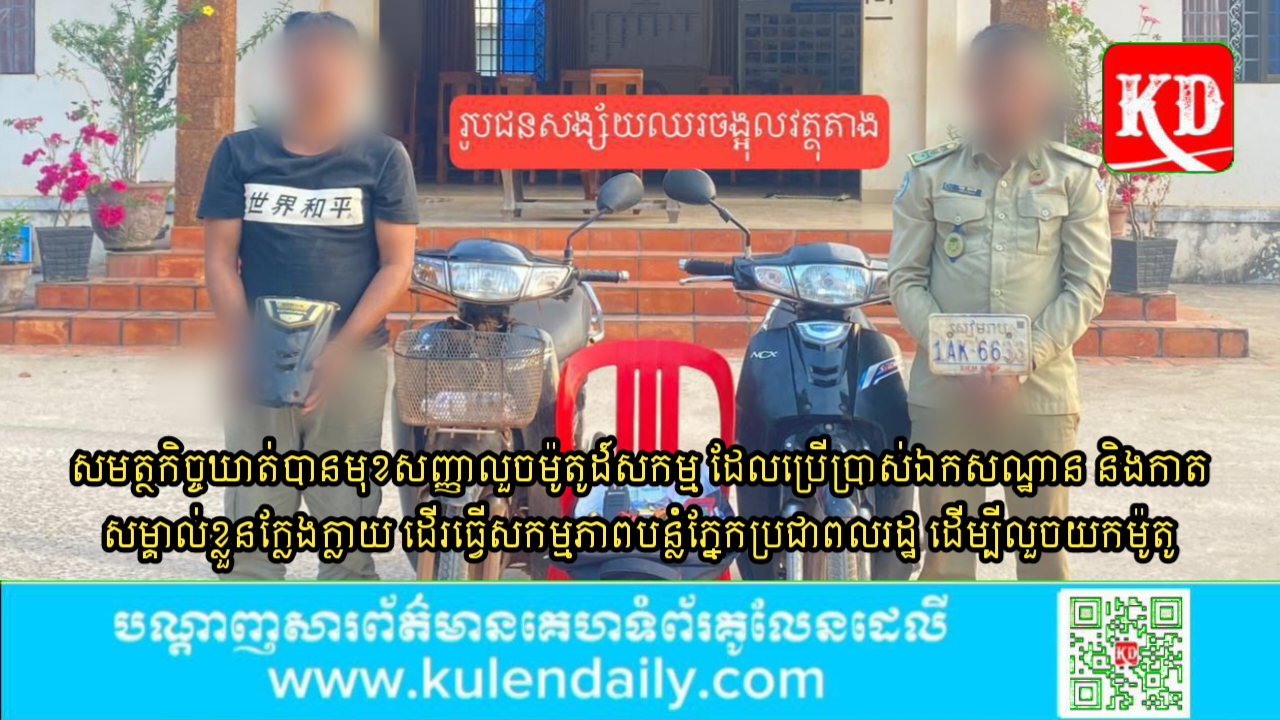 ខេត្តសៀមរាប ៖ ដោយមានការយកចិត្តទុកដាក់ជាប្រចាំពីសំណាក់លោកឧត្តមសេនីយ៍ទោ ហួត សុធី ស្នងការនគរបាលខេត្តសៀមរាប ចំពោះប្រជាពលរដ្ឋក្នុងខេត្តសៀមរាប ទាំងមូល អំពីបញ្ហាសន្តិសុខ សុវត្តិភាព និងមានកិច្ចសម្របសម្រួលនីតិវិធីពីឯកឧត្តម មាស ច័ន្ទពិសិដ្ឋ ព្រះរាជអាជ្ញា នៃអយ្យការអមសាលាដំបូងខេត្តសៀមរាប នៅថ្ងៃទី១៩ ខែកុម្ភៈ ឆ្នាំ២០២៥ នៅវេលាម៉ោង១១ និង០០នាទី សមត្ថកិច្ចទទួលបានសេចក្ដីរាយការណ៍មកថា មានករណី អំពើលួច (លួចម៉ូតូ) កើតហេតុនៅចំណុចទំនប់បឹងផ្ដៅ ស្ថិតក្នុងភូមិច្រេស ឃុំកណ្ដែក ស្រុកប្រាសាទបាគង ខេត្តសៀមរាប ។