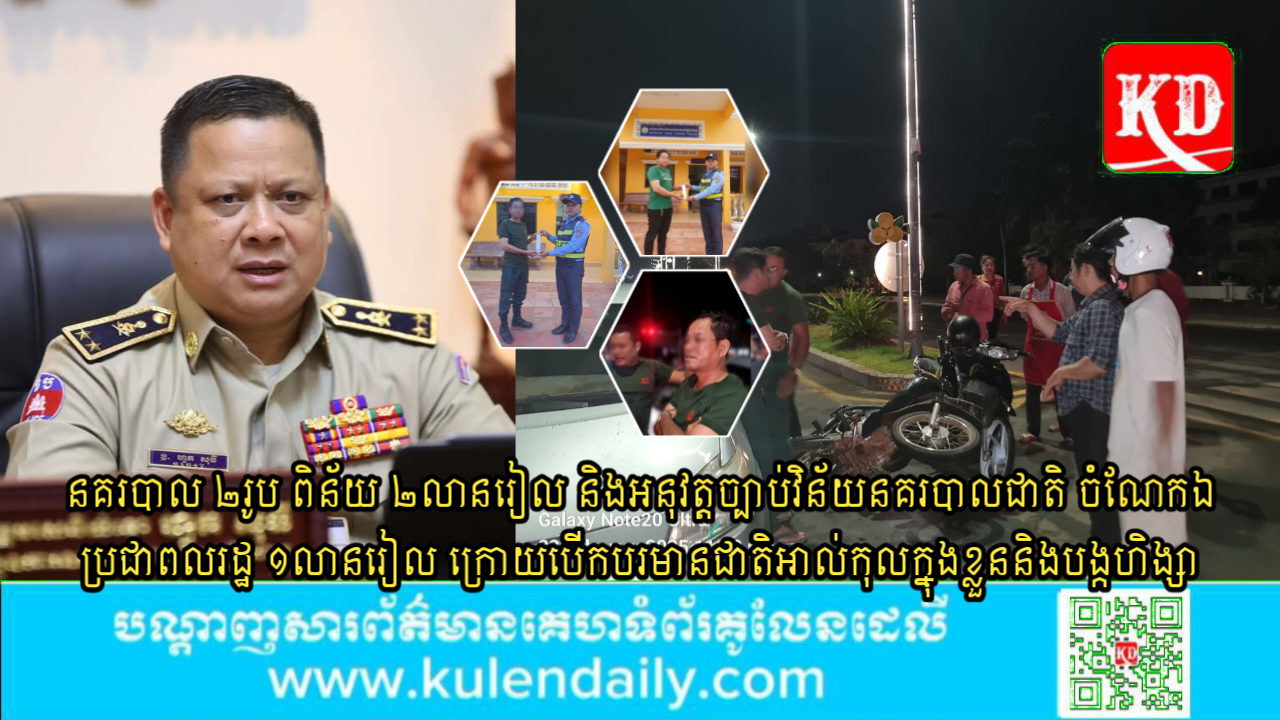 ខេត្តសៀមរាប ៖ នៅព្រលប់ថ្ងៃទី ២៤ ខែកុម្ភៈ ឆ្នាំ២០២៥នេះ លោកឧត្តមសេនីយ៍ទោ ហួត សុធី ស្នងការ នៃស្នងការដ្ឋាននគរបាលខេត្តសៀមរាប បានបញ្ជាក់ថា «ការករណីយប់មិញ ស្រវឹងទាំង២នាក់ នគរបាលពិន័យ ២លានរៀល និងអនុវត្ដច្បាប់វិន័យនគរបាលជាតិ ចំណែកឯប្រជាពលរដ្ឋ ១លានរៀល។ ពេលស្រវឹងកុំបើកបរ!! »។