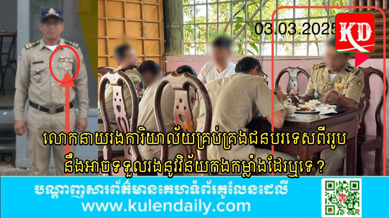 ខេត្តសៀមរាប ៖ នៅព្រឹកថ្ងៃទី០៣ ខែមិនា ឆ្នាំ២០២៥ និងនាពេលកន្លងមក មហាជនបានធ្វើរិះគន់យ៉ាងខ្លាំង ទៅលើរូបភាពប៉ុន្មានសន្លឹករបស់នគរបាលពីររូប ដែលមានតួនាទីជាលោកនាយរងការិយាល័យគ្រប់គ្រងជនបរទេស នៃស្នងការដ្ឋាននគរបាលខេត្តសៀមរាប បន្ទាប់ពីលោកនារងមួយរូបបានដឹកនាំសហជីវិន ពាក់ឯកសណ្ឋាន(ស័ក្តិ) ចូលបរិភោគអាហារ នៅក្នុងអាហារដ្ឋានសាធារណៈ មួយកន្លែងទល់មុខ អតិតអាកាសយានដ្ឋានអន្តរជាតិសៀមរាប ឲ្យល្មើសនឹងប្រការ ១៨ ចំណុច៣ នៃ បទវិន័យនគរបាលជាតិកម្ពុជា ប្រកាសលេខ ៨៧៣ ប្រក និងលោកនាយរងមួយរូបទៀតបានគ្រោងឯកសណ្ឋានមិនមានកាតសំគាល់ខ្លួនជាមន្ត្រីធ្វើការងារផ្ទាល់ជាមួយភ្ញៀវបរទេស នៅ Police Box ក្បែរ Pub Street ដែលកន្លងមក លោកឧត្តមសេនីយ៍ទោ ហួត សុធី ស្នងការ នៃស្នងការដ្ឋាននគរបាលខេត្តសៀមរាប ធ្លាប់បានណែនាំឲ្យនគរបាលនៅទូទាំងខេត្តសៀមរាប ត្រូវពាក់កាតនគរបាលជានិច្ចនៅពេលបំពេញកិច្ចការងារ។