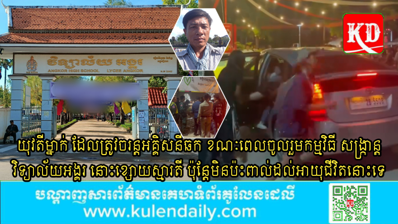 «នៅម៉ោង២២,០០នាទីយប់ថ្ងៃទី០៥ ខែមេសា ឆ្នាំ២០២៥ នៅចំនុចស្តង់លក់អាហារក្នុងពិធីសង្រ្កានវិទ្យាល័យអង្គរ ស្ថិតក្នុងបរិវេណវិទ្យាល័យអង្គរ ក្នុងភូមិវត្តបូព៌ សង្កាត់សាលាកំរើក ក្រុងសៀមរាប មានករណីឆក់ចរន្តអគ្គិសនី ដែលបណ្តាលឲជនរងគ្រោះឈ្មោះ តាន់ ស៊ិនណារ័ត្ន ភេទស្រី អាយុ១៧ឆ្នាំ ជនជាតិខ្មែរ ជាសិស្សថ្នាក់ទី១២ K នៃវិទ្យាល័យអង្គរ ខ្សោយស្មារតី មិនប៉ះពាល់ដល់អាយុជីវិតនោះទេ»។