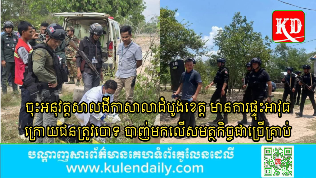 ខេត្តស្វាយរៀង ៖ មានការផ្ទុះអាវុធជាច្រើនគ្រាប់នៅឃុំគ្រួសស្រុកស្វាយជ្រំ ខេត្តស្វាយរៀង ខណៈជនត្រូវចោទ និងបក្ខពួក មិនព្រមសហការជាមួយសមត្ថកិច្ចក្នុងការអនុវត្តតាមដីកាបង្គាប់ឲ្យចាប់ខ្លួនលេខ៥៤៧ពីបទរំលោភលើទំនុកចិត្ត ចុះថ្ងៃទី១០ ខែតុលាឆ្នាំ២០២៣ ចេញដោយលោក ចុក ងួន ចៅក្រមស៊ើបសួរសាលាដំបូងខេត្តស្វាយរៀង ដោយជនត្រូវចោទមានកាន់កាំភ្លើងខ្លី ពណ៌ខ្មៅ មួយដើម បានបាញ់មកលើសមត្ថកិច្ចជាច្រើនគ្រាប់ ត្រូវបានសមត្ថកិច្ចបានប្រើប្រាស់វិធានការ ការពារខ្លួនបាញ់តបត ទៅវិញបណ្តាលឲ្យរងបួសដៃឆ្វេងជនត្រូវចោទ អ៊ុច អ៊ាន និងឃាត់ខ្លួនបក្ខពួកបាន២នាក់ដើម្បីសាកសួរ។