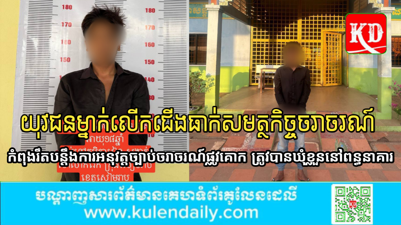 ប្រភពពីសមត្ថកិច្ចបានឲ្យដឹងថា ដោយបានការយកចិត្តទុកដាក់ និងអនុវត្តតាមបទបញ្ជារបស់លោកឧត្តមសេនីយ៍ទោ ហួត សុធី ស្នងការ នៃស្នងការដ្ឋាននគរបាលខេត្តសៀមរាប កាលពីថ្ងៃទី១៨ ខែឧសភា ឆ្នាំ២០២៥ វេលាម៉ោង ១៤ និង០០នាទី កម្លាំងនគរបាលចរាចរណ៍ផ្លូវគោក បានដាក់គោលដៅរឹតបន្តឹងការអនុវត្តច្បាប់ចរាចរណ៍ផ្លូវគោក នៅត្រង់ចំណុចខាងលិចស្ពានព្រះឥន្ទកោសី ដែលស្ថិតនៅក្នុងភូមិមណ្ឌល៣ សង្កាត់ស្លក្រាម ក្រុងសៀមរាប ខេត្តសៀមរាប។ លុះដល់វេលាម៉ោង ១៥ និង២០នាទី មានជនសង្ស័យឈ្មោះ ទី គឹមហួរ ភេទប្រុស អាយុ១៧ឆ្នាំ មុខរបរមិនពិតប្រាកដ មានទីលំនៅបច្ចុប្បន្នភូមិតាវៀន សង្កាត់សាលាកំរើក ក្រុងសៀមរាប ខេត្តសៀមរាប បានធ្វើដំណើរឆ្លងកាត់គោលដៅរឹតបន្តឹងការអនុវត្តច្បាប់ចរាចរណ៍ផ្លូវគោក ដោយពុំបានពាក់មួកការពារសុវត្ថិភាព ក៏ត្រូវបានកម្លាំងសមត្ថកិច្ចបញ្ជាឱ្យឈប់ តែជនសង្ស័យខាងលើមិនព្រមឈប់ហើយបានធ្វើសកម្មភាពលើកជើងខាងឆ្វេងរបស់ខ្លួនធាក់ទៅលើកម្លាំងនគរបាលចរាចរណ៍ ដែលកំពុងអនុត្តច្បាប់ចរាចរណ៍ផ្លូវគោក។