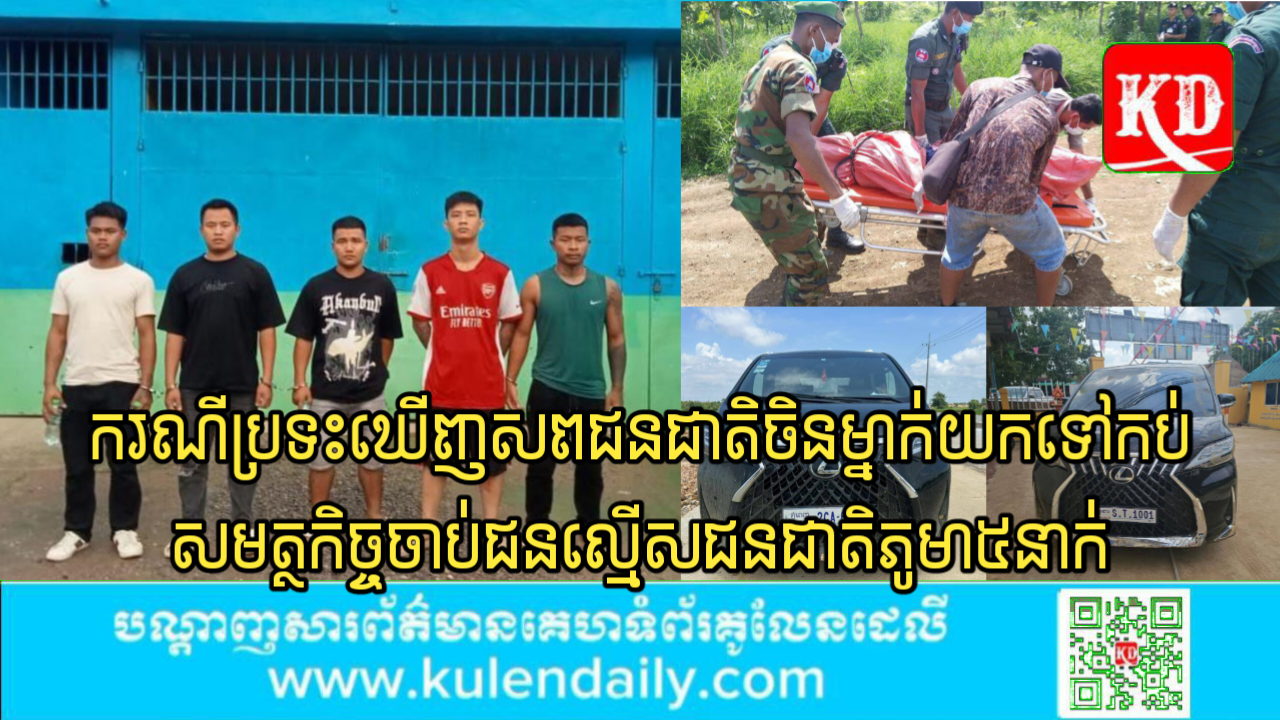ខេត្តបន្ទាយមានជ័យ ៖ លោកឧត្តមសេនីយ៍ទោ សិទ្ធិ ឡោះ ស្នងការនគរបាលខេត្តបន្ទាយមានជ័យ បានបញ្ជាក់ប្រាប់បណ្តាញសារព័ត៌មានក្នុងស្រុក នៅថ្ងៃទី២៦ ខែឧសភា ឆ្នាំ២០២៥នេះថា ជនល្មើសចំនួន៥នាក់ ដែលបានដឹកសព ជនជាតិចិនម្នាក់ យកទៅកប់នៅស្រុកអូរជ្រៅ ខេត្តបន្ទាយមានជ័យ ត្រូវបានកម្លាំងនគរបាលរបស់លោកតាមចាប់បាន ហើយត្រូវបានតុលាការចេញដីកាឃុំខ្លួនដាក់ពន្ធនាគាររួចហើយ។