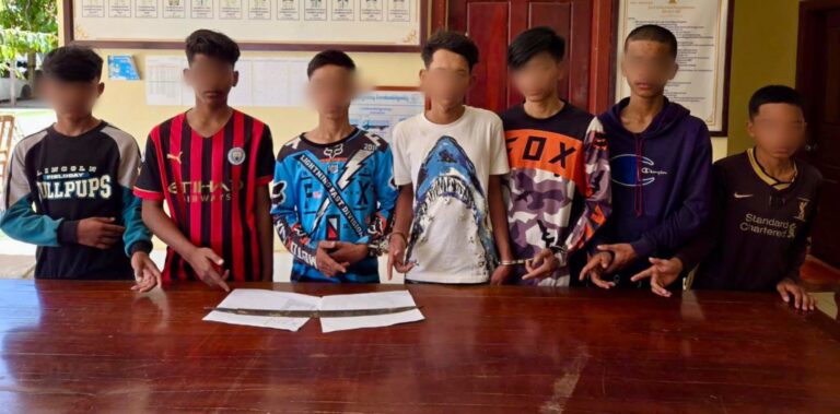 ៧/ឈ្មោះ ពេញ សិលា ហៅឈុយ ភេទប្រុស អាយុ ១៦ឆ្នាំ មុខរបរ គ្មាន មានទីលំនៅបច្ចុប្បន្ន ភូមិចែកខ្សាច់ក្រោម ឃុំអន្លង់សំណរ ស្រុកជីក្រែង ខេត្តសៀមរាប។ (មានសារធាតុញៀនក្នុងខ្លួន) វត្ថុតាងដែលសមត្ថកិច្ចដកហូតមានដាវចំនួន ០១។