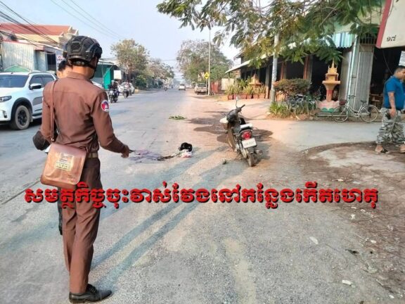 ខេត្តបាត់ដំបង៖ (មានវីដេអូ) កាលពីថ្ងៃទី២៨ ខែកុម្ភៈ ឆ្នាំ២០២៦ អ្នកនាំពាក្យនៃស្នងការដ្ឋាននគរបាលខេត្តបាត់ដំបង បានសេចក្តីថ្លែងការណ៍មួយថា កាលពីថ្ងៃទី១៦ ខែកុម្ភៈ ឆ្នាំ២០២៦ វេលាម៉ោង៦ និង២០នាទី មានករណីគ្រោះថ្នាក់ចរាចរណ៍មួយបានកើតឡើងនៅលើផ្លូវជាតិលេខ៥៧ ក្រុមទី១៥ ភូមិកម្មករ សង្កាត់ស្វាយប៉ោ ក្រុងបាត់ដំបង ខេត្តបាត់ដំបង រវាងរថយន្ត០១គ្រឿងម៉ាកហ៊ីយិនដាយស្តារីច ពណ៌ស ពាក់ផ្លាកលេខ (មិនច្បាស់) ក្រោយពេលកើតហេតុ បានបើកគេចចេញពីកន្លែងកើតហេតុ ដែលបើកប៉ះដៃចង្កូត ជាមួយនិងម៉ូតូ០១គ្រឿងម៉ាកហុងដាឌ្រីម (HONDA DREAM) ពណ៌ខ្មៅពាក់ផ្លាកលេខ បាតដំបង 1AN-6807