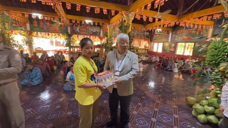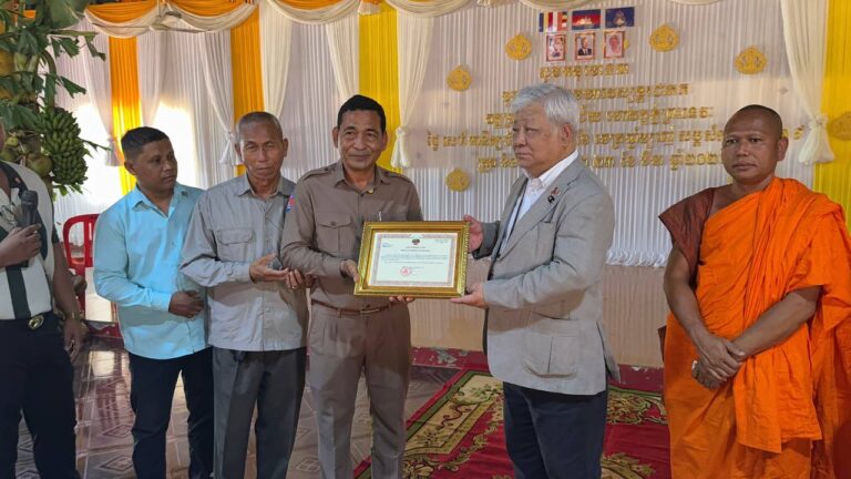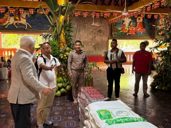 日本の熊本国際化センター(KIC)の谷川正敏理事長が、自然災害の際に同県に寄付をしてくれたカンボジアの人々の善意に感謝し、バンテアイ・スレイ地区の2つの寺院に今も滞在しているカンボジア難民に人道支援物資を届けました。