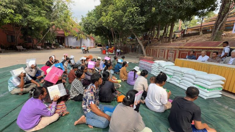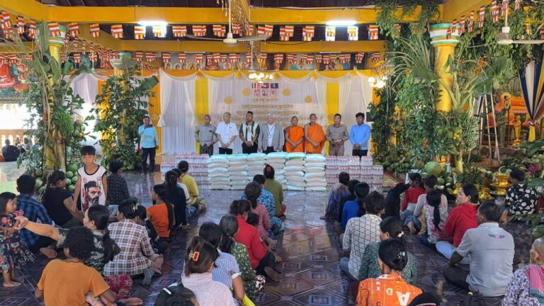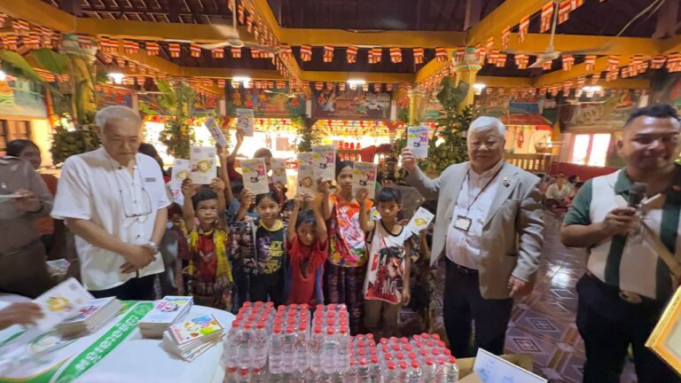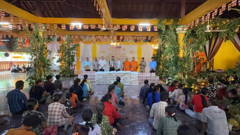 カンボジア難民一同は、谷川正敏氏と熊本県民の皆様から、この度、米と聖水を慈善品としてお贈りいただいたことに深く感謝申し上げます。また、日頃から多大なご支援を賜っている地方自治体、バンテアイ・スレイ県知事、シェムリアップ州知事、そして特にカンボジア王国政府首長に心より感謝申し上げます。さらに、寛大な心をお持ちの皆様、地方自治体、バンテアイ・スレイ県知事、シェムリアップ州知事、そして特にカンボジア王国政府首長に、長寿、富、幸福、そして力の四つの祝福が授けられ、末永く皆様が共に歩んでいけるようお祈り申し上げます。