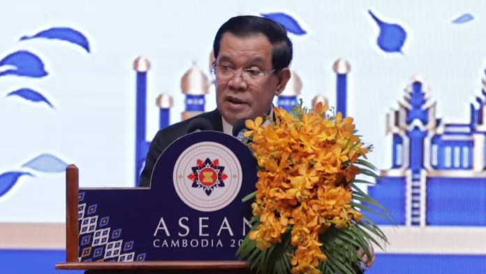 សម្តេចតេជោ ហ៊ុន សែន បានបញ្ជាក់ដោយសង្កត់ធ្ងន់ថា មជ្ឈភាពអាស៊ាន គឺជាកម្លាំងចលករចម្បង សម្រាប់កិច្ចសន្ទនា និងកិច្ចសហប្រតិបត្តិការជាមួយនឹងដៃគូខាងក្រៅ តាមរយៈយន្តការដែលដឹកនាំដោយអាស៊ាន ។ ទោះបីជាស្ថិតក្នុងស្ថានការណ៍ណាក៏ដោយ យើងត្រូវរក្សាឯកភាពអាស៊ាន ដើម្បីអត្ថប្រយោជន៍ខ្ពស់បំផុតសម្រាប់តំបន់ទាំងមូល ។ ការលើកកម្ពស់សាមគ្គីភាព និងឯកភាព នឹងនៅតែជាអាទិភាពកំពូលរបស់យើង នៅក្នុងឆ្នាំបន្តបន្ទាប់ទៀត ។ ជាសក្ខីភាពជាក់ស្តែងនៃស្មារតី «ភាពរួបរួមគ្នា» នៅក្នុងឆ្នាំនេះ យើងអាចដោះស្រាយ និងទប់ស្កាត់បញ្ហាប្រឈមជាច្រើន នៅក្នុងតំបន់យើង ដែលនាំឱ្យយើងមានលទ្ធភាព ក្នុងការរក្សានូវសន្តិភាព វិបុលភាព និងសុខដុមរមនា សម្រាប់គ្រួសារ អាស៊ានរបស់យើង ។ព្រះរាជាណាចក្រកម្ពុជា មានជំនឿយ៉ាងពេញលេញថា សាធារណៈរដ្ឋឥណ្ឌូនេស៊ី ដែលក្លាយជាប្រធានអាស៊ានប្តូរវេនបន្ទាប់ទៅនេះ នឹងបន្តដឹកនាំអាស៊ាន ដើម្បីសម្រេចបាននូវគោលបំណង ចម្បង គឺសហគមន៍អាស៊ាន ប្រកបដោយសុខសន្តិភាព ភាពធន់ និងបរិយាបន្ន ។