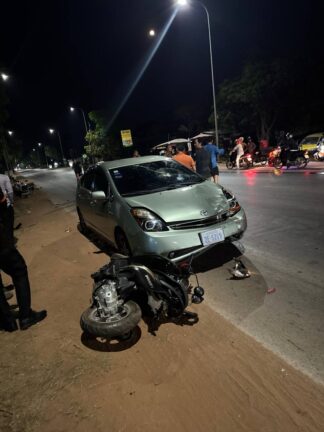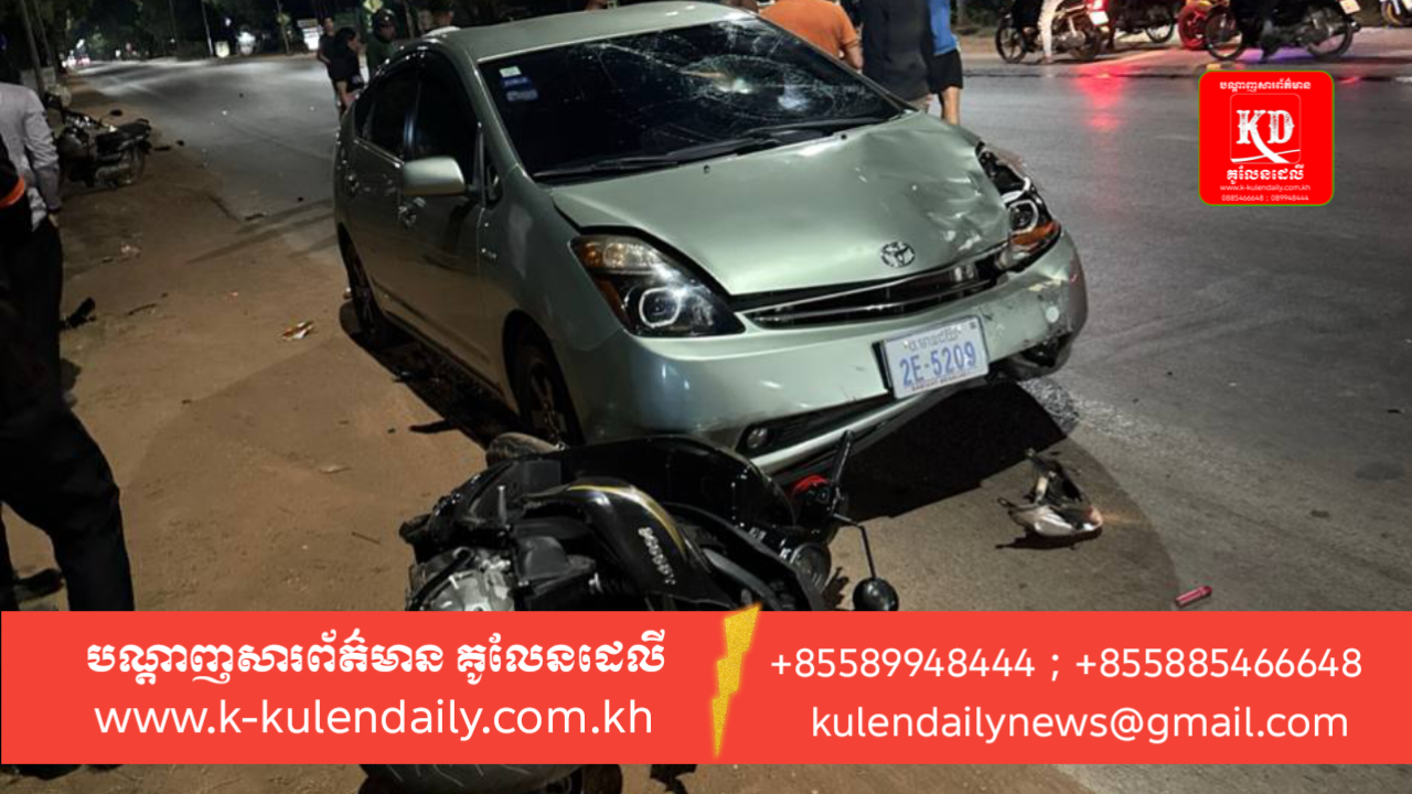 ខេត្តសៀមរាប៖ កាលពីថ្ងៃទី៦ ខែមេសា ឆ្នាំ២០២៦ វេលាម៉ោង ២៣ និង១៥នាទីមានករណីគ្រោះថ្នាក់ចរាចរណ៍ នៅចំណុច ចន្លោះបង្គោលគីឡូម៉ែត្រលេខ៣០៤-៣០៥ ស្ថិតនៅភូមិជ្រៃ ឃុំកណ្តែក ស្រុកប្រាសាទបាគង ខេត្តសៀមរាប លើផ្លូវជាតិលេខ ៦ រវាងម៉ូតូនិងរថយន្ត ដែលបើកបរស្របទិសគ្នា។