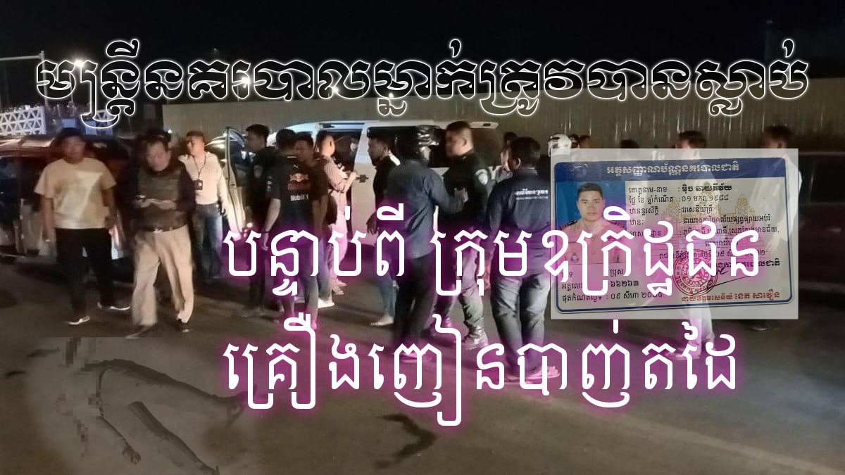 រាជធានីភ្នំពេញ៖ (ព័ត៌មានបឋម) មន្ត្រីនគរបាលម្នាក់ ត្រូវបានស្លាប់បន្ទាប់ពី ក្រុមឧក្រិដ្ឋជនគ្រឿងញៀនបាញ់តដៃ ក្នុងការចុះបង្ក្រាបមួយ ដែលធ្វើឡើងដោយ សមត្ថកិច្ច នៃមន្ទីរប្រឆាំងគ្រឿងញៀន អគ្គស្នងការដ្ឋាននគរបាលជាតិ នៅចំណុចស្តុបផ្លូវ៥០ កែង៦០ម៉ែត្រ ជាប់ព្រុំប្រទល់បីគឺ ជាប់ក្រុងតាខ្មៅ ខណ្ឌមានជ័យ និងកន្លែងកើតហេតុ ខណ្ឌដង្កោ កាលពីវេលាម៉ោង ១៩ និង ៣០នាទី ព្រលប់ថ្ងៃទី២៨ ខែធ្នូ ឆ្នាំ២០២២។