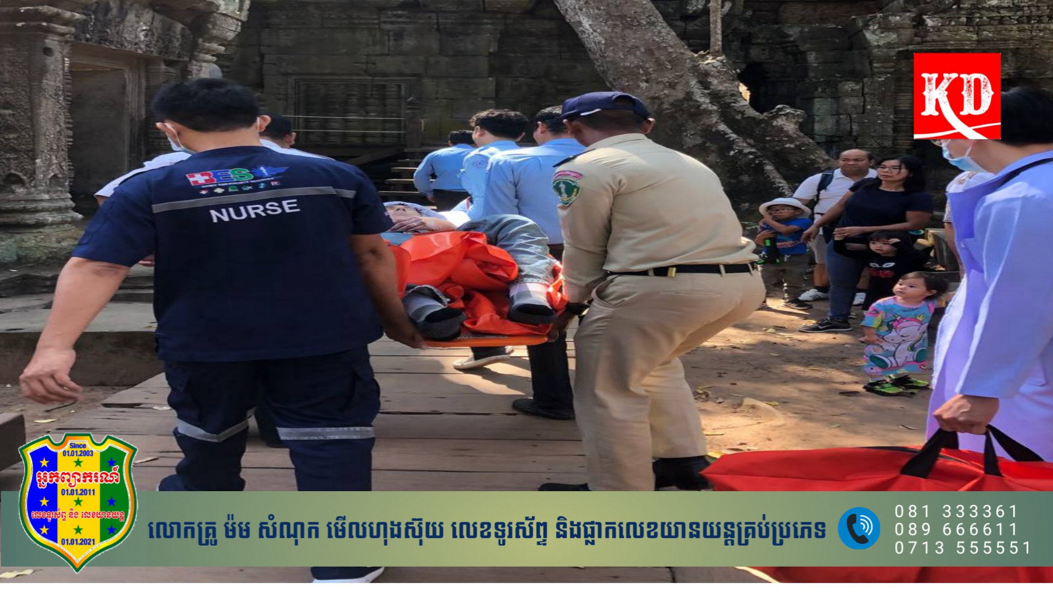 ខេត្តសៀមរាប៖ ជនបរទេសវ័យចំណាស់ម្នាក់បានដួល នៅក្នុងប្រាសាទតាព្រហ្ម ព្រឹកថ្ងៃទី ២០ ខែមករា ឆ្នាំ ២០២៣។