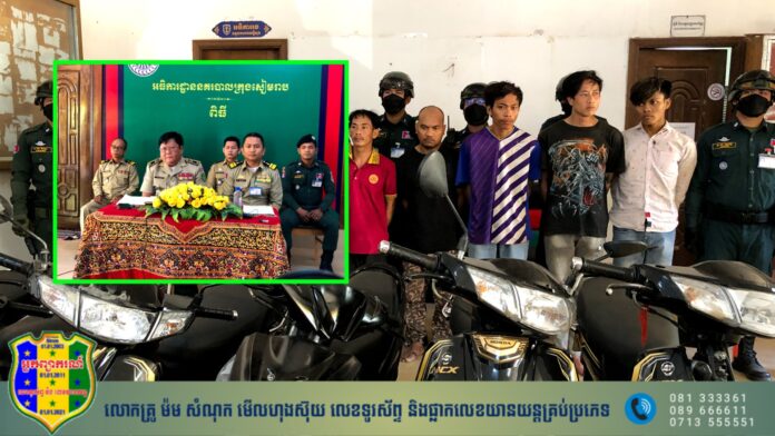 ខេត្តសៀមរាប៖ សន្និសីទ្ធការសែត មួយស្ដីអំពី ការគ្រប់គ្រងសន្តិសុខ សុវត្ថិភាព និងសណ្ដាប់ធ្នាប់ទូទៅនៅក្នុងខេត្ត និង ការបង្ហាញមុខក្រុមចោរលួចម៉ូតូយ៉ាងសកម្មមួយក្រុម មានគ្នា០៩នាក់ ហើយត្រូវឃាត់ខ្លួនបានជនសង័្សយ ចំនួន ៨នាក់ ហើយម្នាក់ទៀតបានកំពុងស្រាវជ្រាវបន្ត ព្រមទាំងបានដកហូតនូវវត្ថុតាង មានម៉ូតូ ០៦គ្រឿង និង ឧបករណ៍សម្ភារៈកែច្នៃមួយចំនួនទៀត ។ អង្គសន្និសីទ្ធការសែតនេះបានធ្វើឡើងក្រោមវត្តមានរបស់លោកឧត្តមសេនីយ៍ត្រី ភឹង ចិន្តារ៉េត ស្នងការរងទទួលផែនព្រហ្មទណ្ឌ នៃស្នងការដ្ឋាននគរបាលខេត្តសៀមរាប និង លោកវរសេនីយ៍ឯក ដា ចំរើន អធិការក្រុងសៀមរាប រួមទាំងមន្ត្រីនគរបាលជំនាញផងដែរ ។