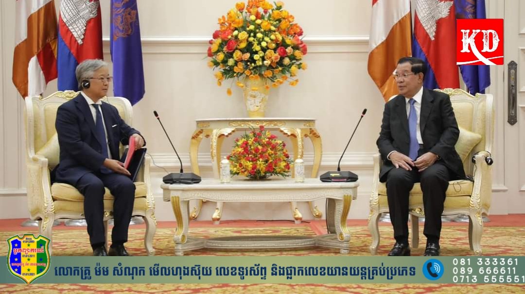 សម្តេចអគ្គមហាសេនាបតីតេជោ ហ៊ុន សែន នាយករដ្ឋមន្រ្តីនៃព្រះរាជាណាចក្រកម្ពុជា បានអនុញ្ញាតឱ្យឯកឧត្តម UENO Atsushi ឯកអគ្គរាជទូតជប៉ុន តែងតាំងថ្មីប្រចាំព្រះរាជាណាចក្រកម្ពុជា ចូលជួបសំដែងការគួរសម និងពិភាក្សាការងារ នៅវិមានសន្តិភាព នាព្រឹកថ្ងៃទី០៨ ខែកុម្ភៈ ឆ្នាំ២០២៣។