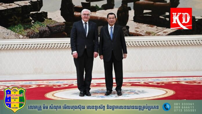 សម្តេចតេជោ ហ៊ុន សែន នាយករដ្ឋមន្ត្រី នៅក្នុងជំនួបដែលប្រកបដោយភាតរភាពនេះ បានឆ្លើយតបដោយក្ដីអំណរគុណចំពោះ លោកប្រធានាធិបតីអាល្លឺម៉ង់ ក្នុងការដែលធ្វើការវាយតម្លៃល្អពីកម្ពុជា។