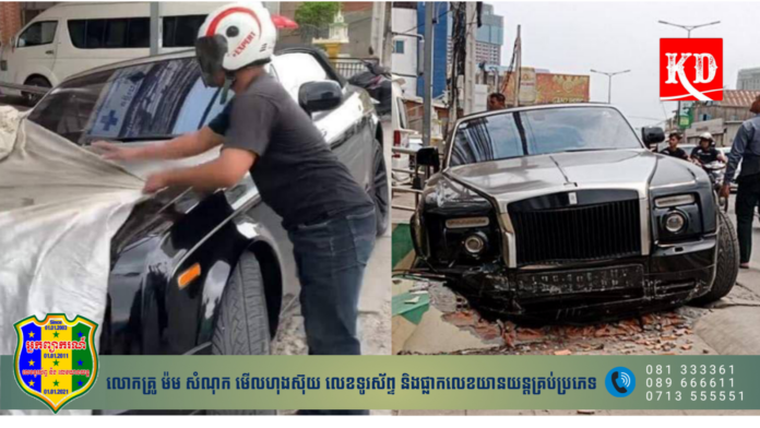 ព័ត៌មានបឋមពីរាជធានីភ្នំពេញ៖ ស្ដេចរថយន្តអង់គ្លេស(Rolls-Royce) ពណ៌ខ្មៅ ពាក់ផ្លាកលេខ កម្ពុជា NAK.JF89 តំលៃខ្ទង់សែនដុល្លារ ខ្ទេ-ច-មុ-ខ ដោយសារបុ-ក-ខឿ-នផ្លូវចូចំណោតក្រោមដី ខាងមុខផ្ទះសំណាក់មហាលាភ ដែលស្ថិតនៅតាមបណ្តោយផ្លូវ២៧៣ ក្នុងសង្កាត់ទួលសង្កែទី១ ខណ្ឌឬស្សីកែវ រាជធានីភ្នំពេញ កាលពីវេលាម៉ោង ១១ និង ៣០នាទីព្រឹកថ្ងៃទី១៩ ខែកុម្ភៈ ឆ្នាំ២០២៣នេះ ។