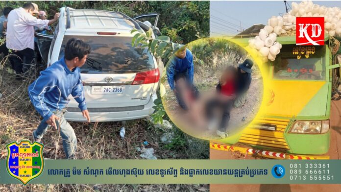 ខេត្តសៀមរាប៖ យ៉ាងហោចណាស់មនុស្សប្រុសស្រី 04 នាក់បានរងរបួសធ្ងន់-ស្រាល ក្នុងហេតុការណ៍គ្រោះថ្នាក់ចរាចរណ៍ រវាង រថយន្តម៉ាក SIENNA និងគោយន្តច្នៃ នៅលេីផ្លូវជាតិលេខ 6 ស្ថិតក្នុងភូមិស្ពានតូច ឃុំឫស្សីលក ស្រុកជីក្រែង ខេត្តសៀមរាប កាលពីវេលាម៉ោង 08 និង 10នាទី ថ្ងៃទី 21 ខែកុម្ភៈ ឆ្នាំ2023។