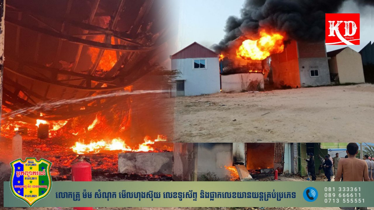 រាជធានីភ្នំពេញ៖អគ្គិភ័យបានឆាបឆេះយ៉ាងសន្ធោសន្ធៅ បំផ្លាញផ្ទះមួយខ្នងជាកន្លែងកាត់ដេរផលិត-ស្តុក-និងលក់ពូក-សាឡុងជាមួយសម្ភារប្រើប្រាស់អស់ទាំងស្រុង។