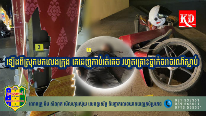 ខេត្តសៀមរាប៖ យុវជនម្នាក់ក្នុងចំណោមគ្នា 6នាក់ ធ្វើដំណើរពីស្រុកក្រឡាញ់មកលេងក្នុងក្រុងសៀមរាប ត្រូវបានជនសង្ស័យមួយក្រុមផ្សេងទៀត ប្រដាប់ដោយដាវ ដេញតាមកាប់ផ្អើលពេញក្រុង ហើយក្រុមជនរងគ្រោះបានព្យាយាមបើកម៉ូតូគេចចេញក្នុងល្បឿនលឿន ក៏ជ្រុលទៅបុកឃឿនផ្លូវ ប៉ើងទៅបុកនឹងបង្គោលខ្លោងទ្វារ បណ្ដាលឲ្យបាក់កស្លាប់មួយរំពេច។