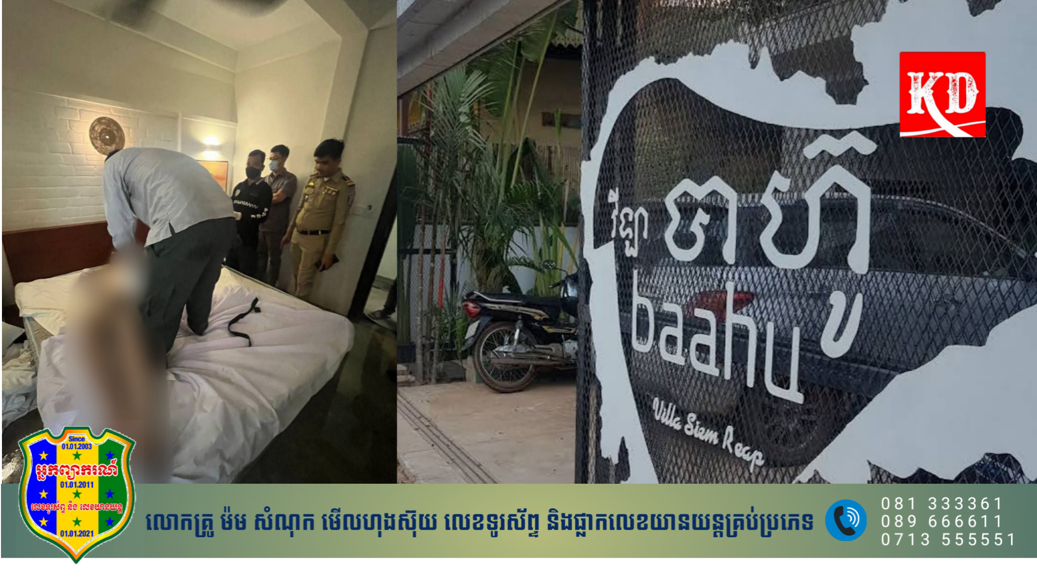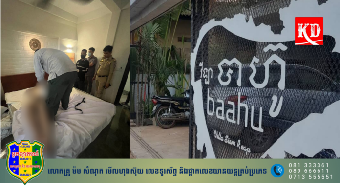 សមត្ថកិច្ចបានឲ្យដឹងថា ជំនាញទទួលព័ត៌មាន ថា មានជនបរទេសម្នាក់ ត្រូវបានប្រទ:ឃើញស្លាប់នៅក្នុងបន្ទប់ទឹក នៃ វីឡា បាហ៊ូ ( Baahu Villa SiemReap ) ដែលស្ថិតនៅតាមបណ្ដោយផ្លូវ ២៨ មិថុនា ក្នុងក្រុមទី១០ ភូមិវិហារចិន សង្កាត់ស្វាយដង្គំ ក្រុងសៀមរាប ខេត្តសៀមរាប កាលពីវេលាម៉ោង ១០ និង ០០ នាទី ថ្ងៃទី ១៧ ខែ មិនា ឆ្នាំ ២០២៣។