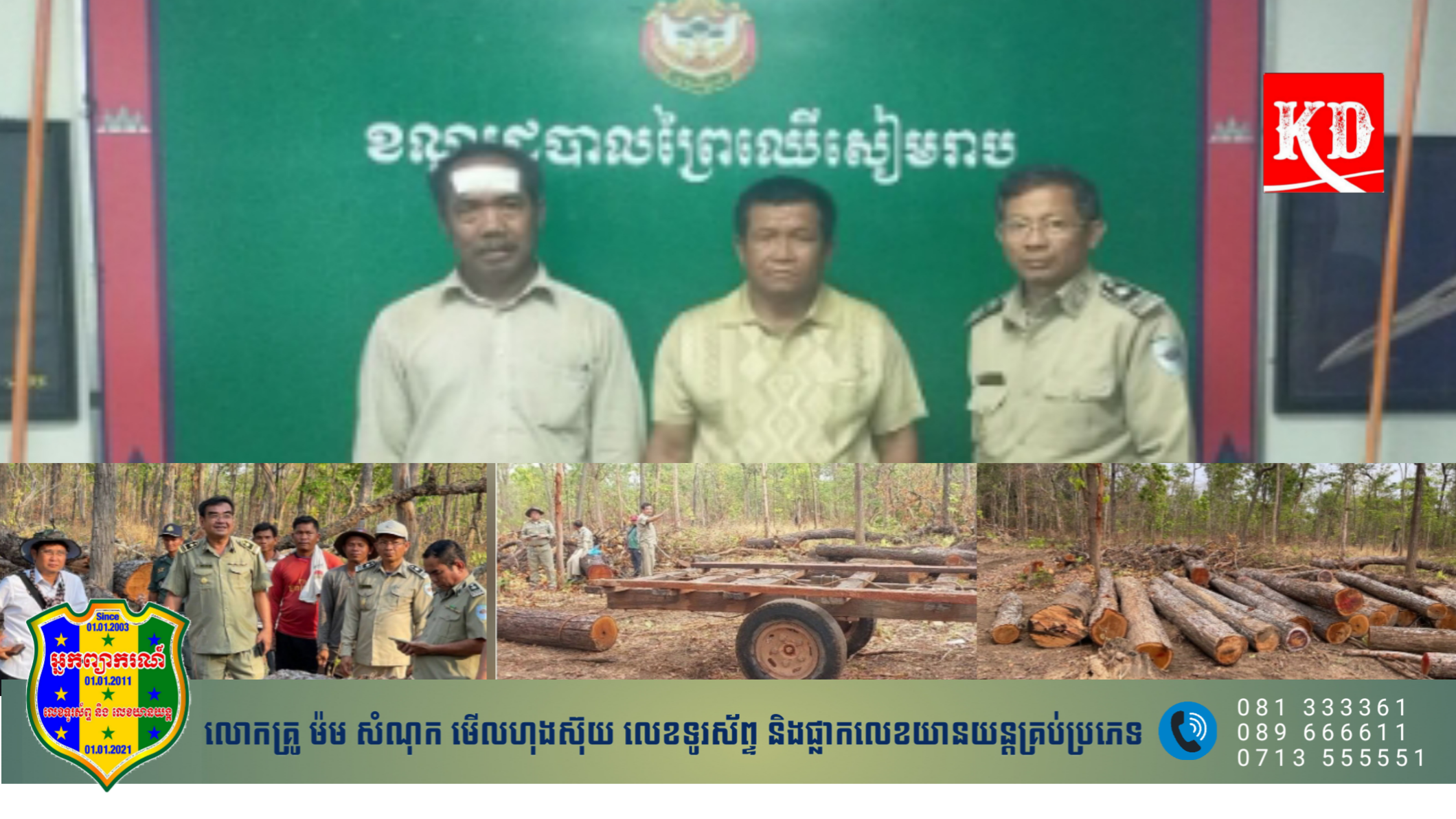 ខេត្តសៀមរាប៖ កម្លាំងជំនាញរដ្ឋព្រៃឈើសៀមរាប សហការជាមួយកម្លាំងសមត្ថកិច្ចចម្រុះស្រុកស្វាយលើ ចាប់ខ្លួនប្រធានសហគមន៍ម្នាក់ និងអនុប្រធានភូមិពពេលម្នាក់ ក្នុងករណីកាប់រំលំដើមឈើ ការដកបង្ខិតបង្គោលព្រំ និងបំផ្លាញស្លាក់សញ្ញាហាមឃាត់ ប្រព្រឹត្តនៅក្នុងសហគមន៍ព្រៃខ្លុង ដែលខ្លួនកំពុងការពារ ស្ថិតក្នុងភូមិត្រពាំងពពេល ឃុំតាសៀម ស្រុកស្វាយលើ ខេត្តសៀមរាប បញ្ជូនទៅតុលាការខេត្តសៀមរាប ហើយត្រូវបានបញ្ជួនទៅឃុំខ្លួនបណ្ដោះអាសន្ន បន្ទាប់ពីឆ្លងកាត់នីតិវិធីស៊ើបសួរ របស់ចៅក្រម វែង មួយគា នៅរសៀលថ្ងៃទី ៣១ ខែមីនាឆ្នាំ២០២៣នេះ។