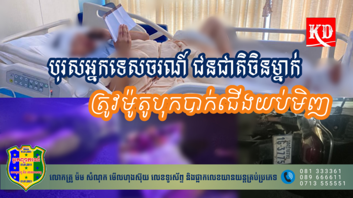 ខេត្តសៀមរាប៖ បុរសអ្នកទេសចរណ៍ជនជាតិចិនម្នាក់ ត្រូវម៉ូតូបុកបាក់ជើង កាលពីវេលាម៉ោង២២ និង៥០នាទី ថ្ងៃទី២២ ខែមេសា ឆ្នាំ២០២៣កន្លងទៅ។