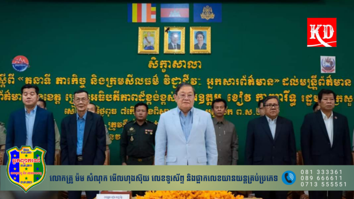 ខេត្តសៀមរាប៖ ឯកឧត្តម ខៀវ កាញារីទ្ធ រដ្ឋមន្ត្រីក្រសួងព័ត៌មាន អញ្ជើញអធិបតីដ៏ខ្ពង់ខ្ពស់ បើកសិក្ខាសាលាស្តីពី “តួនាទី ភារកិច្ច និងសីលធម៌ វិជ្ជាជីវៈអ្នកសារព័ត៌មាន” ជូនដល់មន្ត្រីព័ត៌មាន និង អ្នកសារព័ត៌មានក្នុងខេត្តសៀមរាប នៅសាលប្រជុំសាលាខេត្ត នាព្រឹកថ្ងៃទី ២៦ ខែ មេសា ឆ្នាំ២០២៣នេះ។