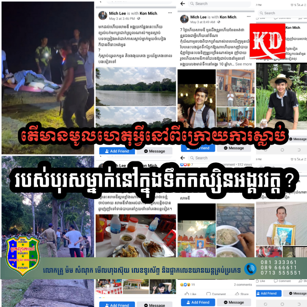 ខេត្តសៀមរាប៖ ប្រជាពលរដ្ឋបានលើកឡើងថា តើមានមូលហេតុអ្វីនៅពីក្រោយការស្លាប់ របស់បុរសម្នាក់ នៅក្នុងទឹកកស្សិនអង្គរវត្ត នៅព្រលប់ថ្ងៃទី១០ ខែឧសភា ឆ្នាំ២០២៣នេះ?