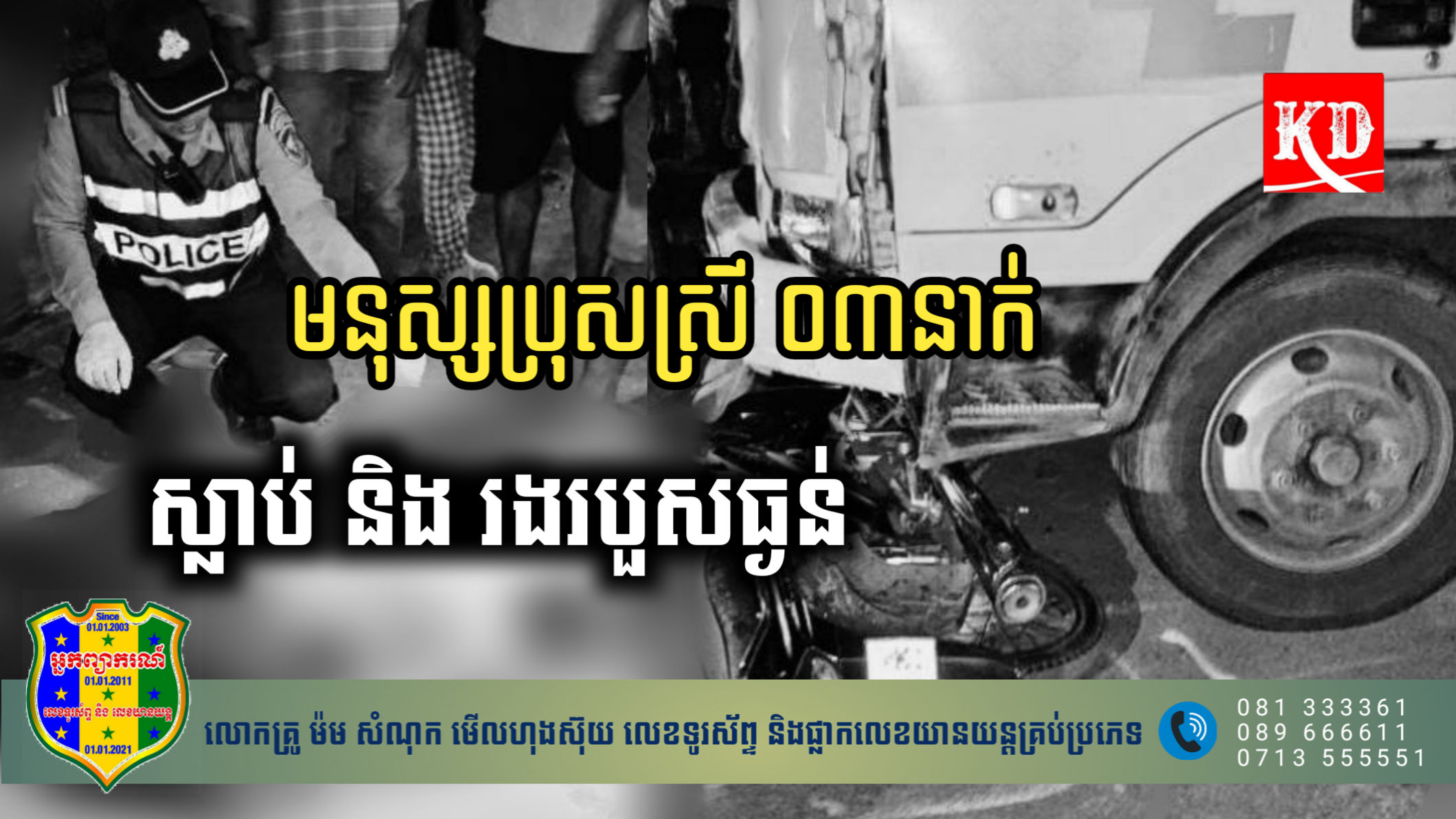 ខេត្តសៀមរាប៖ មនុស្សប្រុសស្រី ០៣នាក់បានស្លាប់ និងរបួសធ្ងន់ ក្នុងករណីគ្រោះថ្នាក់ចរាចរណ៍រវាងរថយន្ត និងម៉ូតូ នៅលើផ្លូវជាតិលេខ៦ ត្រង់ចន្លោះបង្គោលគីឡូម៉ែត្រ ២៤៣ និង ២៤៤ ដែរស្ថិតនៅក្នុងភូមិកំពង់ក្តី២ ឃុំកំពង់ក្តី ស្រុកជីក្រែង ខេត្តសៀមរាប កាលពីវេលាម៉ោង ១៩ និង ៣០នាទីថ្ងៃទី៣០ ខែឧសភា ឆ្នាំ២០២៣។