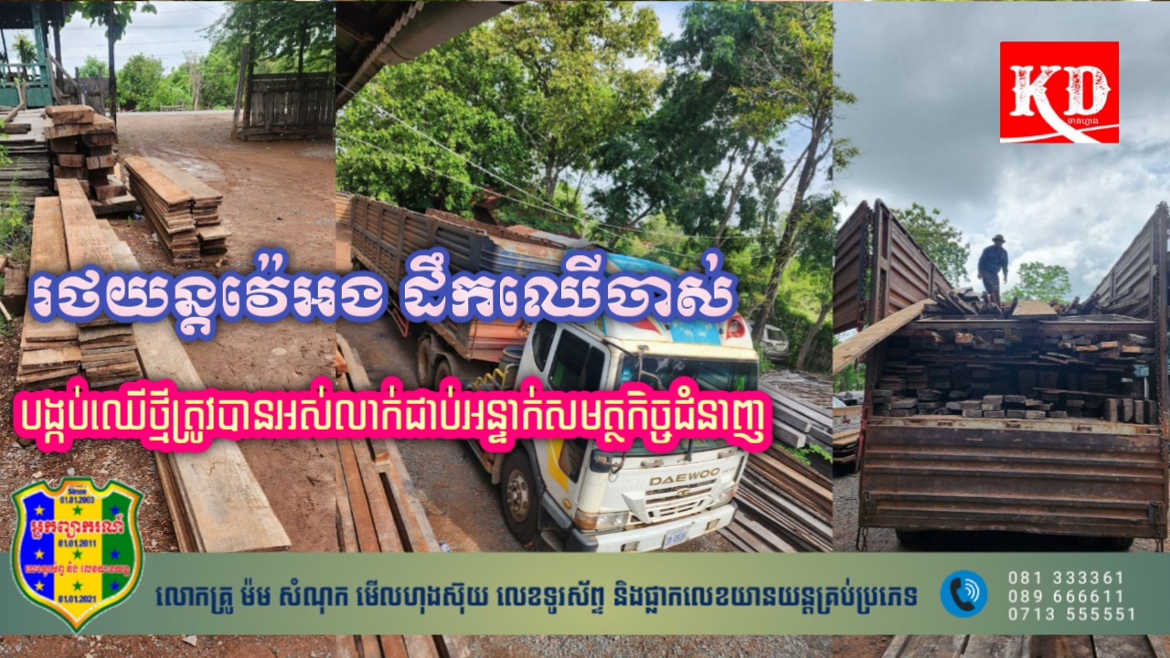 លោកកែវ ចំណាន នាយសង្កាត់រដ្ឋបាលព្រៃឈើអូរគ្រៀងបានឱ្យដឹងនៅព្រឹកថ្ងៃទី២ ខែមិថុនានេះថា រថយន្ដលួចបន្លំដឹកឈើថ្មីខុសច្បាប់ម៉ាកDEAWOO ប្រភេទវ៉េអងផ្លាកលេខត្បូងឃ្មុំ 3A-0936។ត្រូវកម្លាំងសហការបង្រ្គាបបានកាលពីល្ងាចថ្ងៃទី៣១ ខែឧសភា ឆ្នាំ២០២៣។