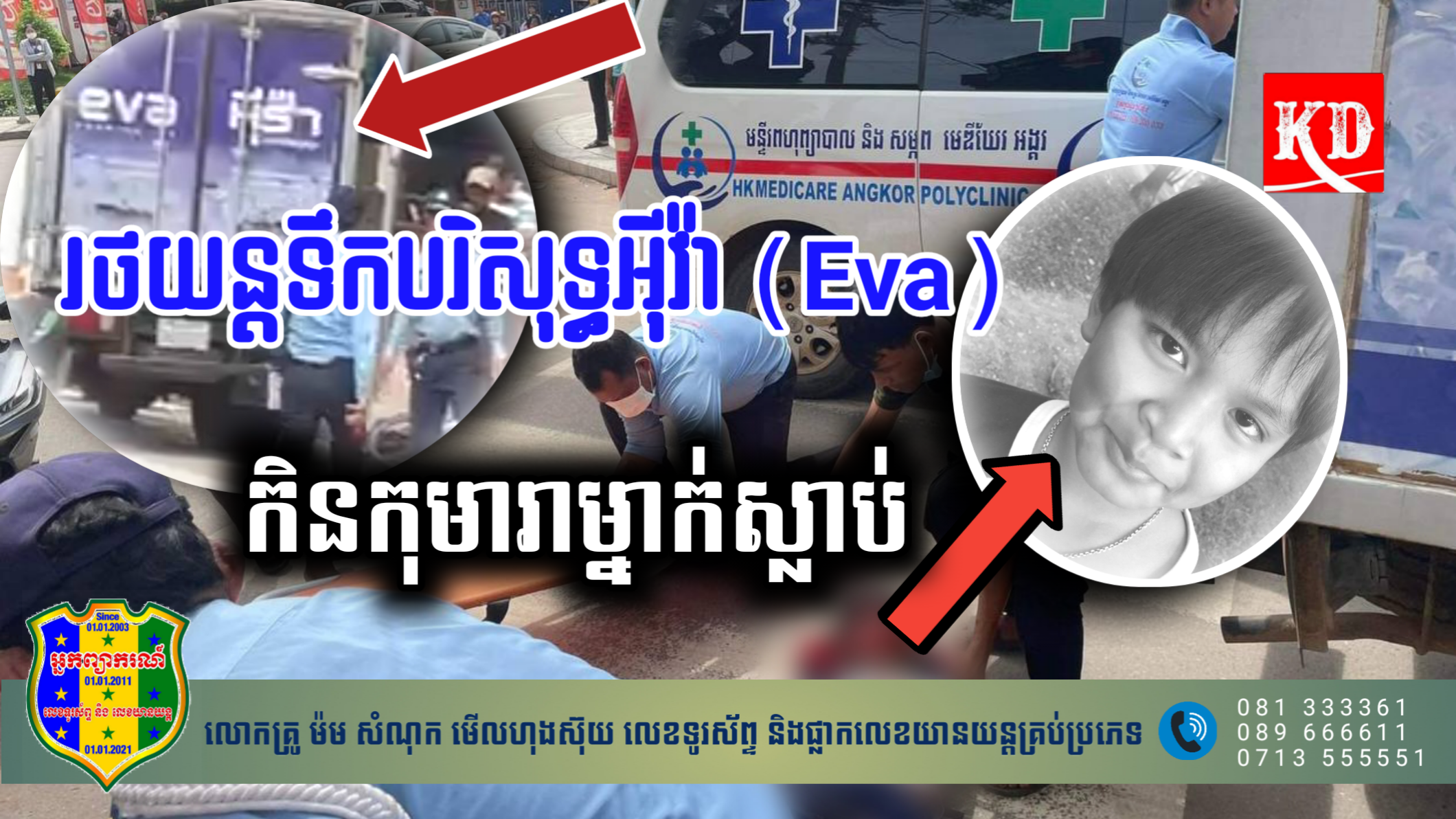 ខេត្តសៀមរាប៖ កុមារាម្នាក់ស្លាប់បាត់បង់ជីវិត ដោយសាររថយន្តទឹកបរិសុទ្ធអុីវ៉ា (Eva)កិន វេលាម៉ោង ១០ និង ០០នាទី ថ្ងៃទី ១០ ខែមិថុនា ឆ្នាំ២០២៣។