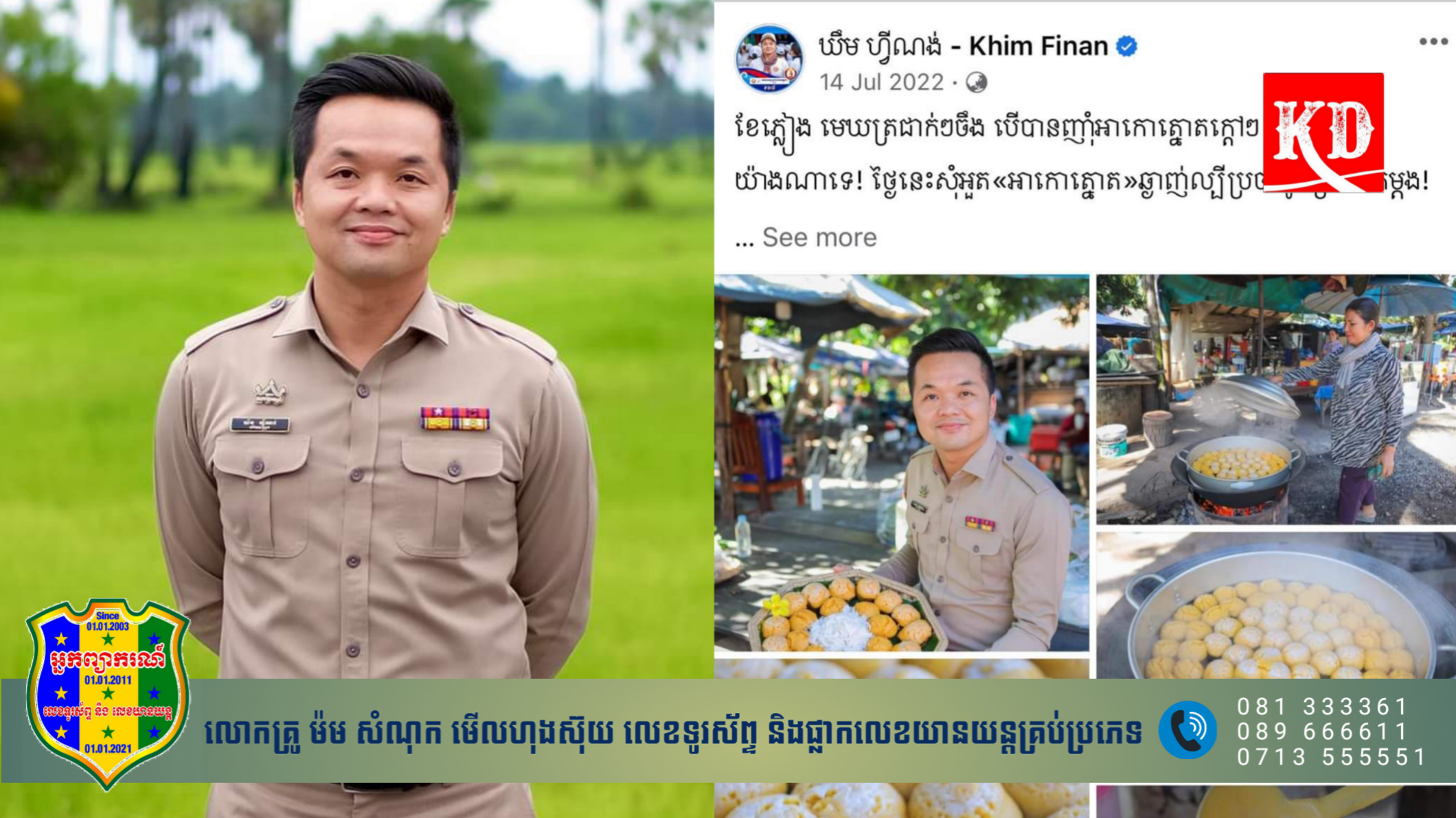 ខេត្តសៀមរាប៖ លោក ឃឹម ហ្វីណង់ អភិបាលរងខេត្តសៀមរាប និងជាអតីតអភិបាលនៃគណៈអភិបាលស្រុកបន្ទាយស្រីដ៍ល្បីល្បាញនោះ បានបង្ហោះសារភ្ញាក់ផ្អើលមួយ និងមិននឹកស្មានដល់ នៅលើ facebook ផ្លូវការ របស់លោកដែលមានឈ្មោះថា “ឃឹម ហ្វីណង់-Khim Finan” ដោយរូបលោកបានក្លាយជាអ្នកផ្សាយពាណិជ្ជ ឱ្យនំអាកោរត្នោតព្រះដាក់ ដោយមិនដឹងខ្លួនទាល់តែសោះ នៅរសៀលថ្ងៃទី ២១ខែមិថុនា ឆ្នាំ ២០២៣ នេះ។