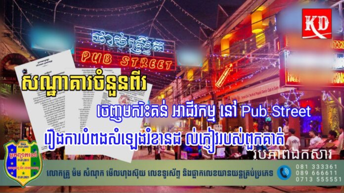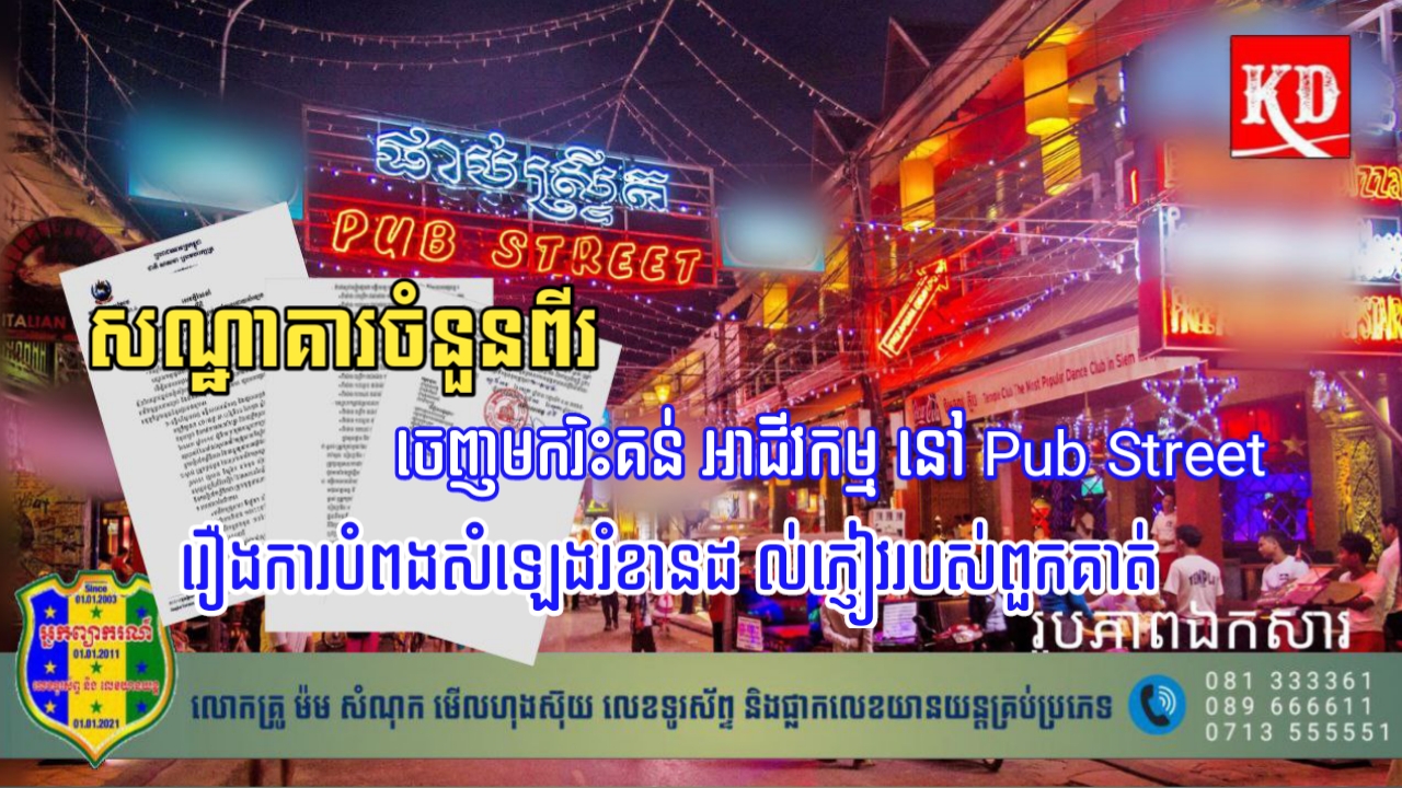 សូមបញ្ជាក់ជូនផងដែរថា កាលពីពេលកន្លងទៅថ្មីៗនេះ រដ្ឋបាលខេត្តសៀមរាប បានចេញនូវសេចក្ដីណែនាំ លេខ ០០២/២៣ ស.ណ.ន ស្ដីអំពី ការគ្រប់គ្រង និងវិធានការទប់ស្កាត់ ការរំខានដោយសំឡេងក្នុងភូមិសាស្ត្រខេត្តសៀមរាប ដែលចុះហត្ថលេខាដោយ ឯកឧត្តម ទៀ សីហា អភិបាលនៃគណៈអភិបាលខេត្តសៀមរាប កាលពីថ្ងៃទី ១០ ខែមេសា ឆ្នាំ ២០២៣ រួចមកហើយ ប៉ុន្តែម្ចាស់អាជីវកម្មមួយចំនួន នៅត្រង់ចំណុច pub street និងបៀរហ្កាដិន ជាច្រើន ក្នុងភូមិសាស្ត្រខេត្តសៀមរាប ហាក់ព្រងើយកន្តើយ ក្នុងចូលរួមអនុវត្តតាម ពុំនោះទៀតសោត បែរជាផ្គើនលើសដើមទៅទៀត។