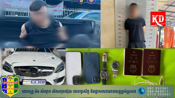 -រថយន្ត ១គ្រឿង ម៉ាក Mercedes C300 ពណ៌ស ពាក់ស្លាកលេខ កម្ពុជា KLK.9898 ជាមធ្យោបាយជិះធ្វើសកម្មភាព។