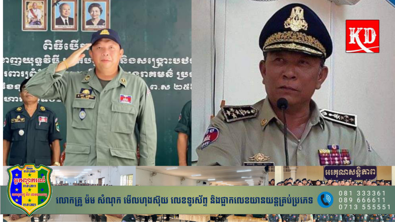 ខេត្តព្រះវិហារ៖ លោក ឧត្តមសេនិយ៍ទោ ខេង សុហ្វីណេ អនុប្រធាននាយកដ្ឋានកណ្តាលនគរបាលព្រំដែន តំណាងដ៏ខ្ពង់ខ្ពស់ ឯកឧត្តម នាយឧត្តមសេនីយ៍ ខេង សុមេធ អគ្គស្នងការរងនគរបាលជាតិ ជំនួយការដឹកនាំការងារព្រំដែនរួម ទទួលទិសភូមិភាគទី៣ ទី៤ និងទី៥ បានអញ្ជើញជាអធិបតី ក្នុងពិធីប្រកាសផ្ទេរភារកិច្ច និងតែងតាំងមុខតំណែងមន្រ្តីនគរបាលជាតិ នៅសាលាហ្វឹកហ្វឺនជំនាញនគរបាលការពារព្រំដែន ខេត្តព្រះវិហារ កាលពីព្រឹកថ្ងៃទី១៤ ខែសីហា ឆ្នាំ២០២៣។