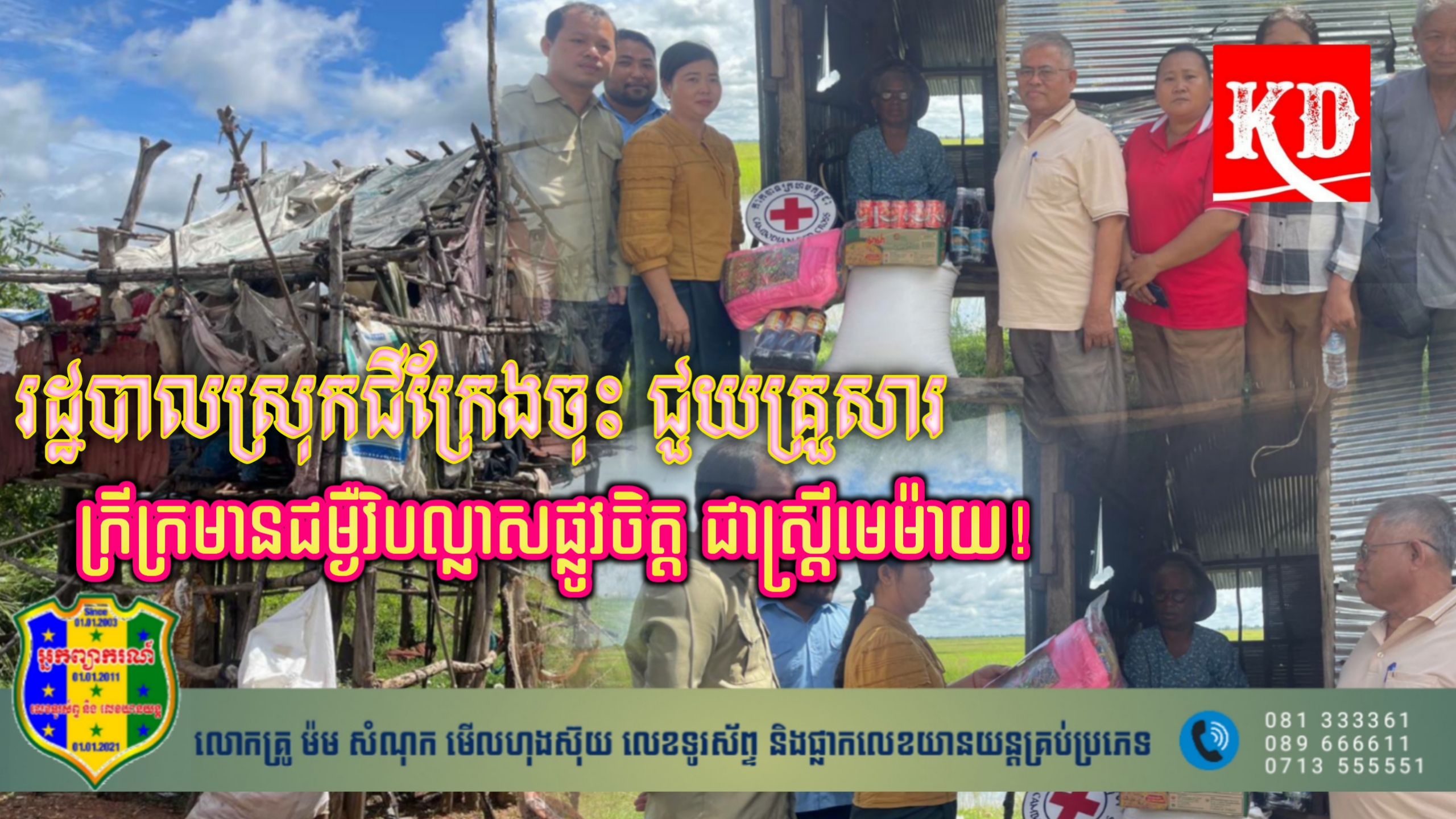 អាជ្ញាធរធរមូលដ្ឋានបន្តថា នៅថ្ងៃទី ១៨ ខែកញ្ញា ឆ្នាំ២០២៣នេះ អាជ្ញាធរស្រុកជីក្រែង បានបន្តចុះទៅសំណេះសំណាល សួរសុខទុក្ខ និងនាំយកនូវគ្រឿងឧបភោគបរិភោគ ដែលជាជំនួយបន្ថែម របស់អនុសាខាកាកបាទក្រហមកម្ពុជា ស្រុកជីក្រែង រួមមាន អង្ករ៣០គីឡូក្រាម មីម៉ាម៉ា១កេស ទឹកសុីអុីវ១យួរ ទឹកត្រី១យួរ ត្រីខ១យួរ មុង១ ភួយ១ ក្រម៉ា១ សារ៉ុង១ ខ្នើយ១ ថវិកាចំនួន ១០ម៉ឺនរៀល ក្នុងគ្រាដែលគាត់កំពុងតែជួបការលំបាក និងបាត់បង់ស្មារតីពុំអាចគ្រប់គ្រងខ្លួនឯងបានផងនោះ។