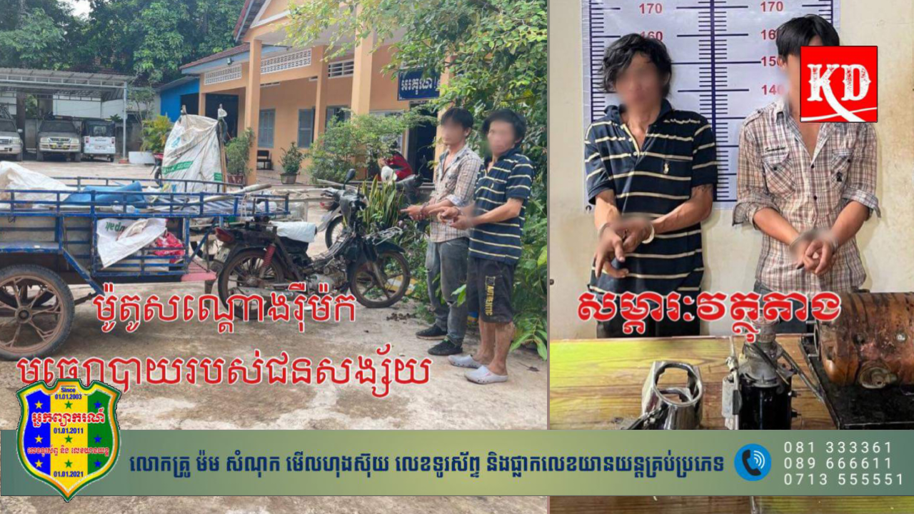 សមត្ថកិច្ចបន្តថា “ដោយមានការចង្អុលបង្ហាញពីសំណាក់លោកឧត្តមសេនីយ៍ទោ តេង ច័ន្ទណាត ស្នងការនគរបាលខេត្ត និងលោកវរសេនីយ៍ឯក នួន ស័ក្តិចំរេីនរិទ្ធ ស្នងការរងទទួលផែនការងារនគរបាលព្រហ្មទណ្ឌ ក្រោមការដឹកនាំបញ្ជាផ្ទាល់ដោយ លោកវរសេនីយ៍ឯក ដា ចំរើន អធិការនគរបាលក្រុងសៀមរាប កម្លាំងសមត្ថកិច្ចយើងបានចុះទៅកន្លែងកើតហេតុ តាមការពិនិត្យកាមេរ៉ាសុវត្ថិភាព ក៏កំណត់បានមុខសញ្ញាជនសង្ស័យ និងបានធ្វើការល្បាត ក៏ប្រទះឃើញជនសង្ស័យចំនួន ០២នាក់ ដែលកំពុងតែជិះម៉ូតូរ៉ឺម៉ក ហេីយឃាត់យកមកសួរនាំ នៅវេលា ០៣ និង ០០នាទី រំលងអធ្រាត្រឈានចូលថ្ងៃទី២១ ខែកញ្ញា ឆ្នាំ២០២៣ផងដែរ”។
