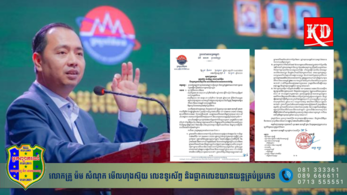 រាជធានីភ្នំពេញ៖ ឯកឧត្តម នេត្រ ភក្រ្តា រដ្ឋមន្ត្រីក្រសួងព័ត៌មាន បានចុះហត្ថលេខាលើលិខិត លេខ ០៥៨ សជណ ព.ម ព្រមានចាត់វិធានការចំពោះក្រុមហ៊ុន ក្រុមហ៊ុន កាស៊ីណូ ថបដាយអិម៉ិន ( TOP DIAMOND CASINO ) និងអ្នកសារព័ត៌មានមកពីប្រមាណ ៧០០ ទៅ ៩០០អង្គភាព ដែលមានការពាក់ព័ន្ធទៅនឹងការសុំលុយកាក់ និងបានទទួលការឧបត្ថម្ភពីក្រុមហ៊ុនជាហូរហែ ធ្វើសកម្មភាពល្មើសច្បាប់ រួមចំណែកធ្វើឲ្យចុះខ្សោយ ក្រមសីលធម៌វិស័យព័ត៌មាននៅកម្ពុជា កាលពីថ្ងៃទី ៤ ខែតុលាឆ្នាំ ២០២៣ កន្លងទៅ។