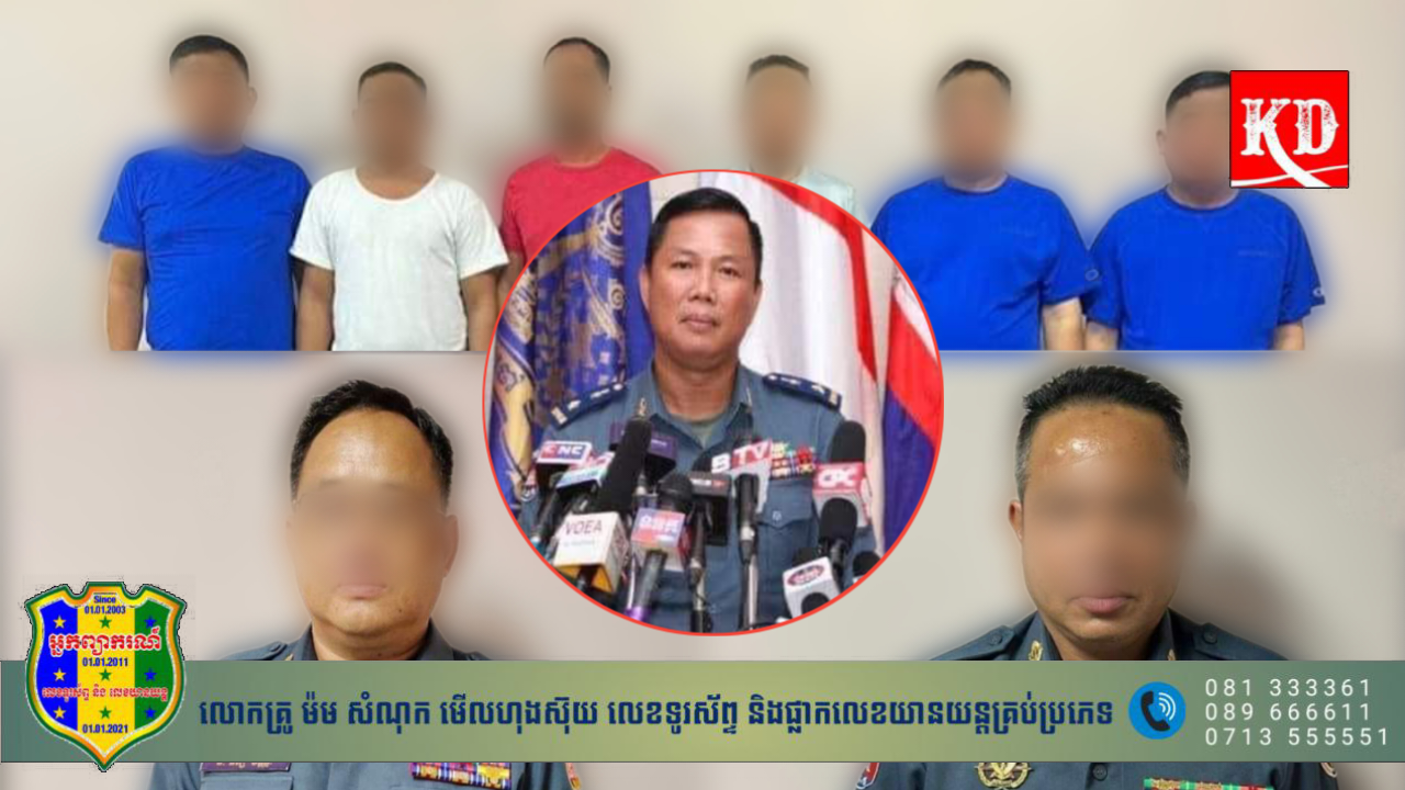 ខេត្តកំពង់ស្ពឺ៖ លោក វរសេនីយ៍ឯក ទិត្យ វណ្ណៈ មេបញ្ជាការរងកងរាជអាវុធហត្ថខេត្តកំពង់ស្ពឺ លោកវរសេនីយ៍ត្រី យស ឌីណា មេបញ្ជាការមូលដ្ឋានកងរាជអាវុធហត្ថស្រុកភ្នំស្រួច និងមន្ត្រីកងរាជអាវុធហត្ថចំនួន៤នាក់ទៀត ត្រូវបានកម្លាំងអាវុធហត្ថខេត្តព្រះសីហនុធ្វើការឃាត់ខ្លួនកសាងសំណុំរឿងបញ្ជូនទៅសាលាដំបូងខេត្តព្រះសីហនុ ដើម្បីចាត់ការបន្តតាមផ្លូវច្បាប់ ដែលសង្ស័យថាពាក់ព័ន្ធនឹងរឿងទទួលផលបទល្មើសគ្រឿងញៀន កាលពីថ្ងៃទី២៩ ខែតុលា ឆ្នាំ២០២៣កន្លងទៅ។