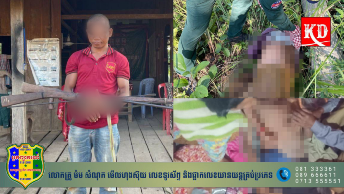 ខេត្តព្រះវិហារ៖ ក្មួយប្រុសតិរច្ឆាន មានឈ្មោះ អាំ ឡាម ភេទប្រុស អាយុ២៩ឆ្នាំ ប្រើកាំភ្លើងកែច្នៃ(កាប៊ីន)បាញ់សម្លាប់ពូមីងយ៉ាងព្រៃផ្សៃ ដោយចោទថាចេះអាបធ្មប់ នៅចំណុចបុស្សល្ហុង ចំការរបស់ជនរងគ្រោះ ស្ថិតក្នុងភូមិធ្មា ឃុំធ្មា ស្រុកជ័យសែន ខេត្តព្រះវិហារ កាលពីថ្ងៃទី២៧ ខែវិច្ឆិកា ឆ្នាំ២០២៣កន្លងទៅ។