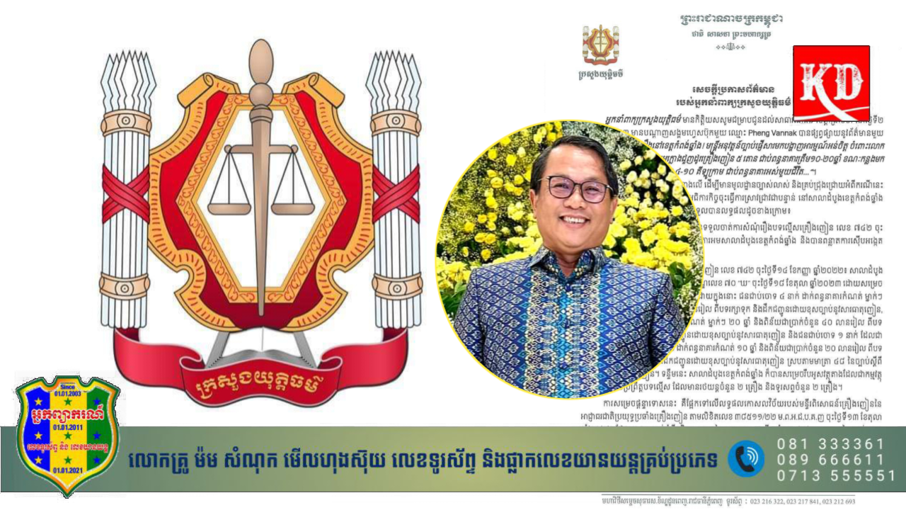 រាជធានីភ្នំពេញ៖នៅថ្ងៃទី ០៨ ខែធ្នូ ឆ្នាំ២០២៣នេះ អ្នកនាំពាក្យក្រសួងយុត្តិធម៌ បានចេញនូវសេចក្តីប្រកាសព័ត៌មាន ប្រតិកម្មទៅនឹងការផ្សាយនៅលើបណ្ដាញសង្គមហ្វេសប៊ុកមួយ ឈ្មោះ« Pheng Vannak»។