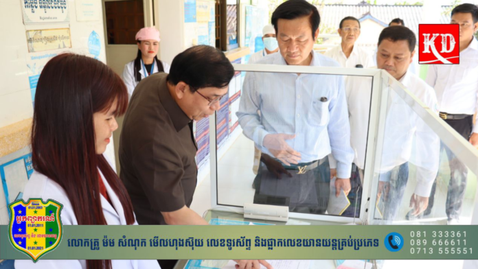 ខេត្តប៉ៃ លិន៖ ដោយទទួលបានការណែនាំដ៏ខ្ពង់ខ្ពស់របស់ ឯកឧត្តមសាស្រ្តាចារ្យ ឈាង រ៉ា រដ្ឋមន្រ្តីក្រសួងសុខាភិបាល ព្រមទាំងទទួលបានការចង្អុលបង្ហាញពី ឯកឧត្តមសាស្ត្រាចារ្យ កុយ វ៉ាន់នី រដ្ឋលេខាធិការ និងលោកជំទាវវេជ្ជបណ្ឌិត យក់ សម្បត្តិ រដ្ឋលេខាធិការក្រសួងសុខាភិបាល ក្នុងនោះថ្នាក់ដឹកនាំក្រសួងសុខាភិបាល ដឹកនាំដោយ ឯកឧត្តមសាស្ត្រាចារ្យ ប៉ិច សុធី រដ្ឋលេខាធិការ រួមជាមួយ ឯកឧត្តម យូ ពិសី អនុរដ្ឋលេខាធិការ និងឯកឧត្តមសាស្ត្រាចារ្យ សាន់ ចន្ទសឿង ទីប្រឹក្សាក្រសួងសុខាភិបាល បានចុះទៅពិនិត្យស្ថានភាពនៃមណ្ឌលសុខភាព និងពង្រឹងគុណភាពសេវានៅតាមមណ្ឌលសុខភាពក្នុងខេត្តប៉ៃ លិន លើសកម្មភាពចំនួន៥ ចាប់ពីថ្ងៃទី១២ ដល់ថ្ងទី១៣ ខែធ្នូ ឆ្នាំ២០២៣។